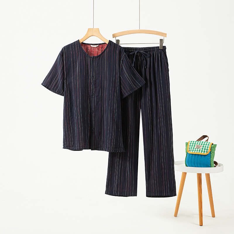 Главная страница > 60-штучные весенне-летние пижамы из чистого хлопка из цветной двухслойной пряжи для женщин с подушечками для груди, костюмы с рукавами три четверти, домашняя одежда для пар из цветной пряжи