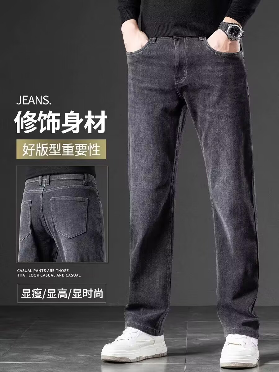 Главная страница > Мужские джинсы прямого кроя из Гонконга, весна-осень 2025, черно-серые, эластичные, повседневные, для мужчин среднего возраста, универсальные, с флисовой подкладкой