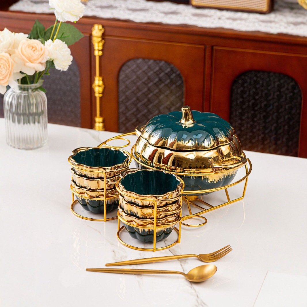 Тыквенный золотой суп набор pot трансграничный pumpkin керамическая золотая полка Пномпень тыквенный суп набор