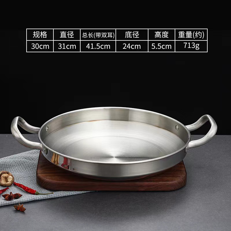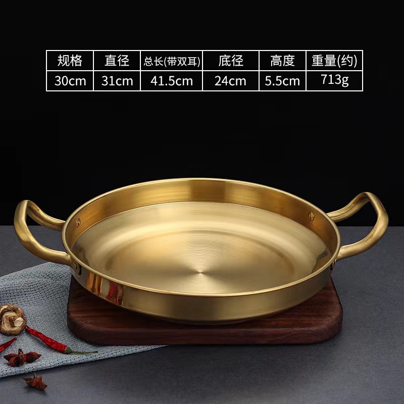 Главная страница > Сухой горшок из нержавеющей стали в Корейском стиле, горшок для морепродуктов, горячий горшок, неглубокий горшок с золотым плоским дном, тарелка для посуды, коммерческий маленький жареный горшок с двойным ухом