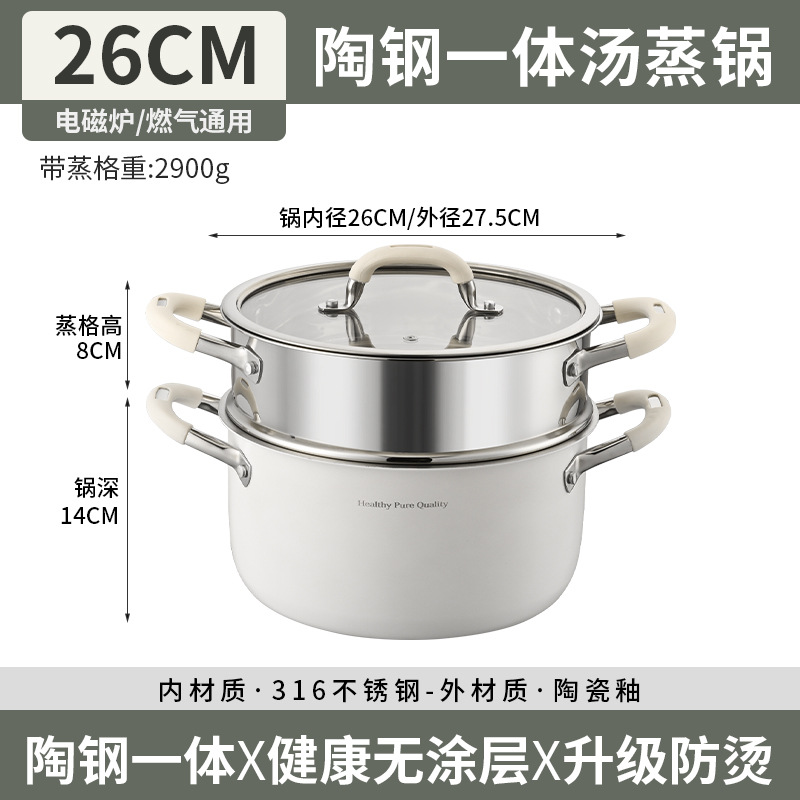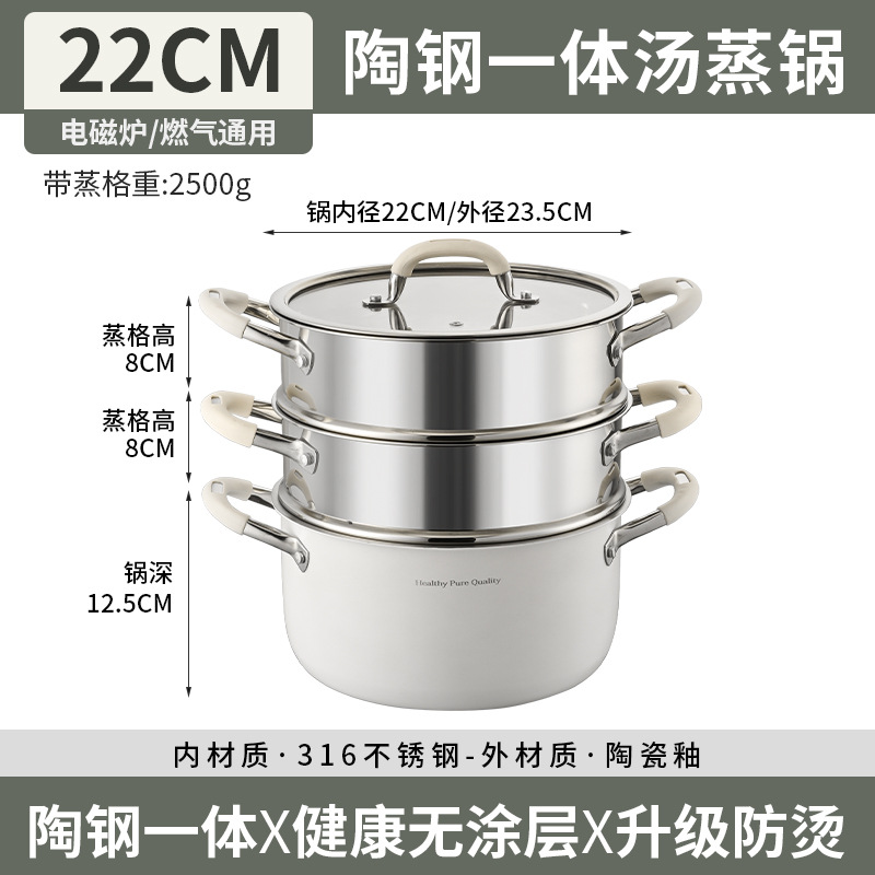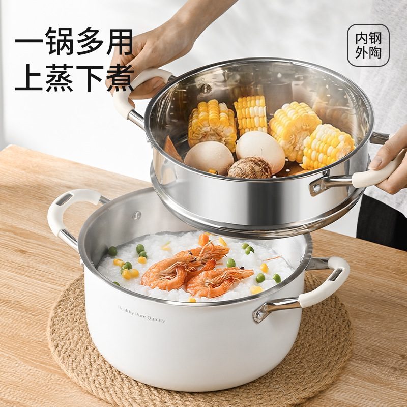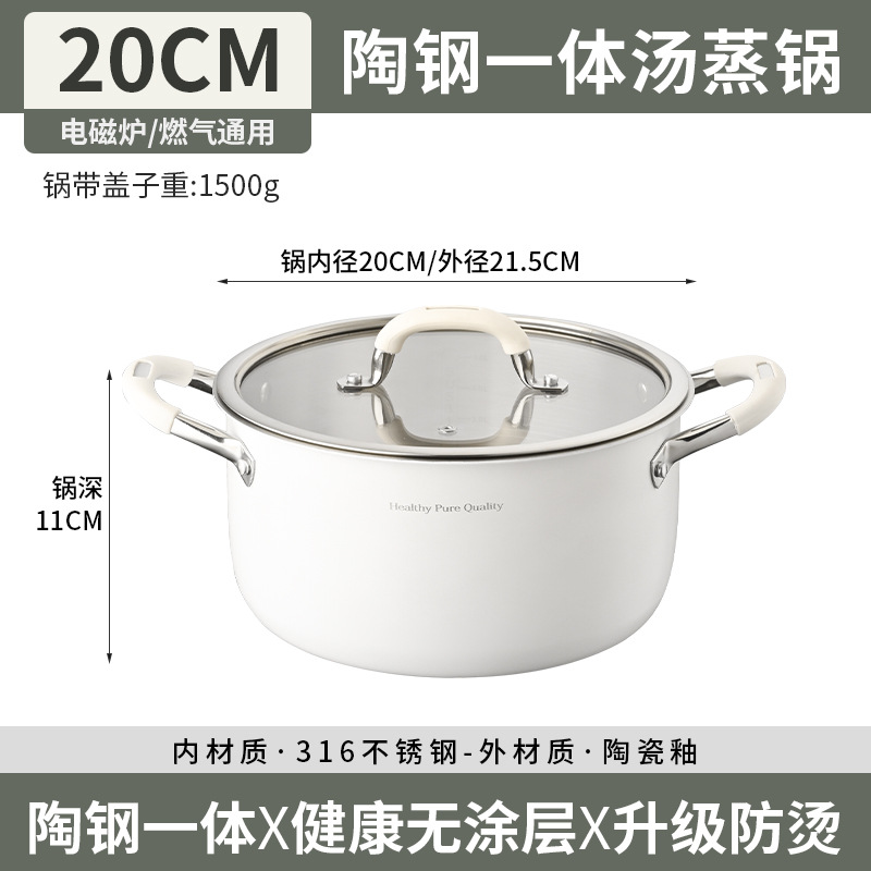 Главная страница > Керамический 316L Суп из нержавеющей стали без покрытия утолщение и углубление домашнего супа индукционная плита газовый двухушной пароварка