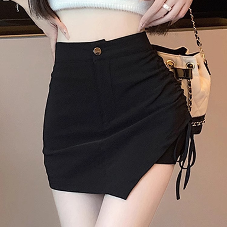 Главная страница > Новый костюм юбка-юбка женская летняя высокая талия тонкая 2024 сезон горячая девушка сексуальная нерегулярная черная юбка