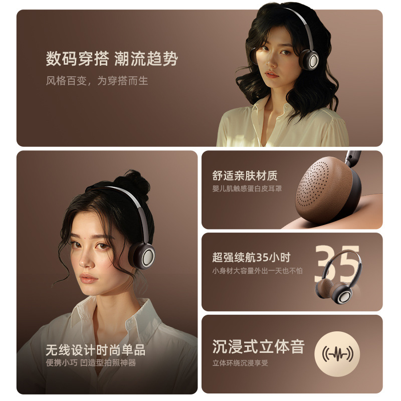 Новая Bluetooth-гарнитура CR-28, кремовый стиль, студенческая милая маленькая металлическая бинауральная гарнитура, гарнитура 6,0
