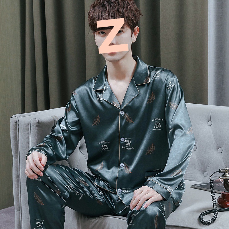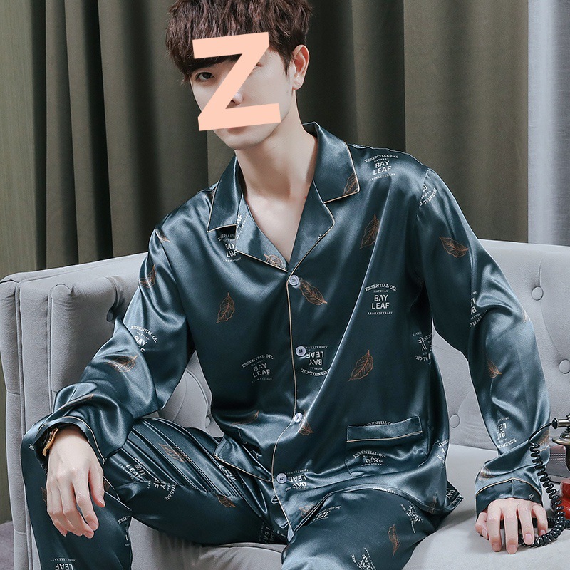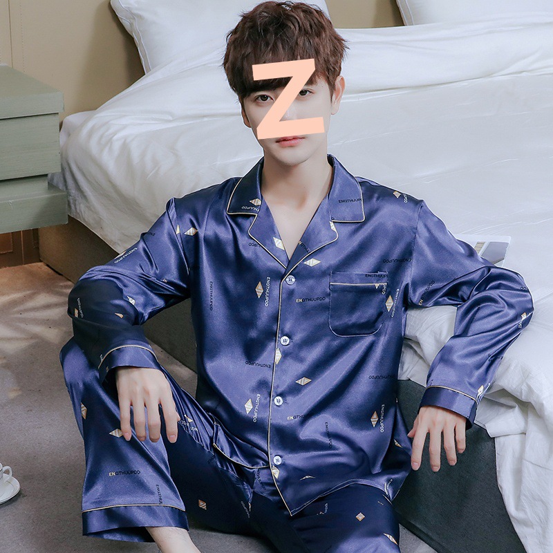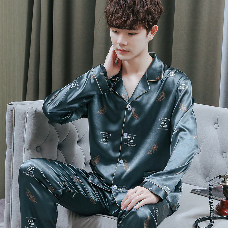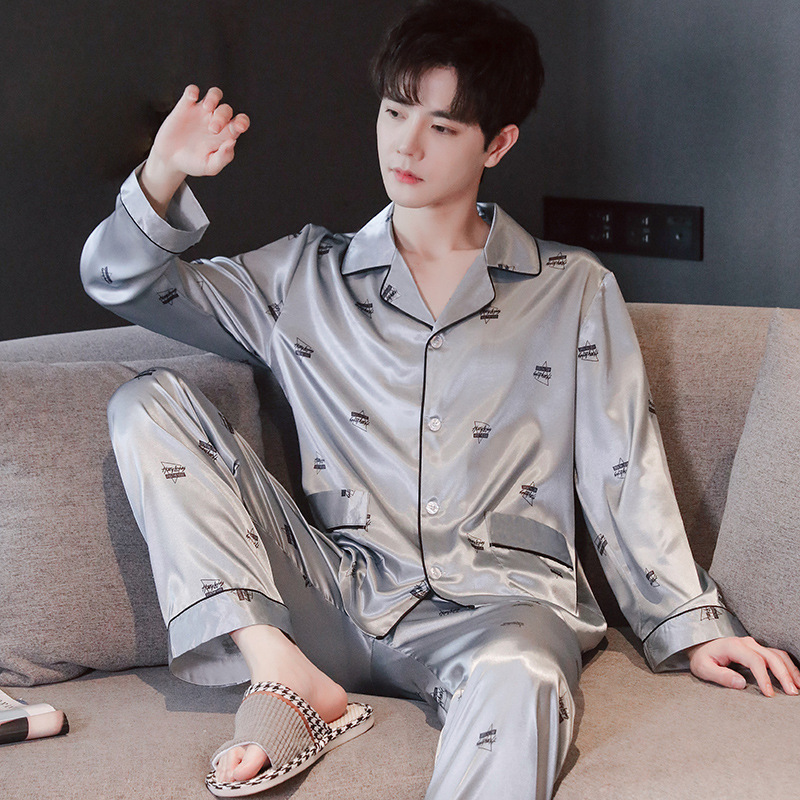 Главная страница > Мужской комплект пижамы из ледяного шелка 2025 года, длинные рукава и брюки, весна-осень, тонкий, больших размеров, домашняя одежда