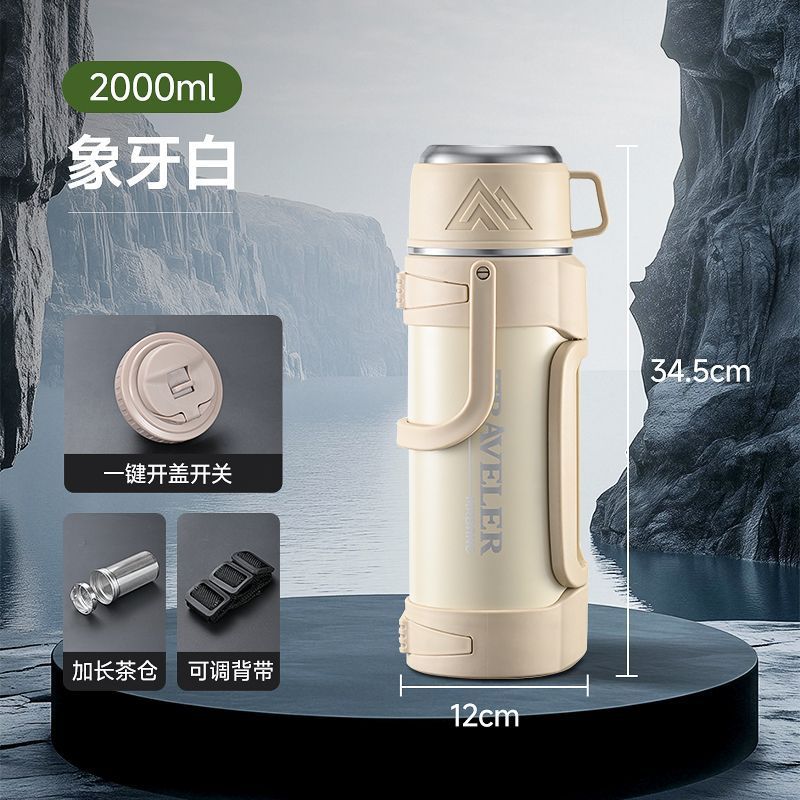 2000 мл бежевый [отбойная внутренняя крышка + разделение чая и воды + регулируемый ремешок]