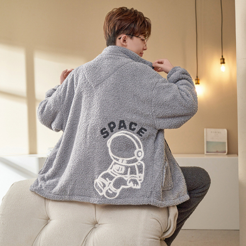Прямая трансляция Маленькая красная книга с полукольцевыми молниями мультфильм пара пижамы мужская зимняя толстая фланелевая зимняя домашняя одежда набор