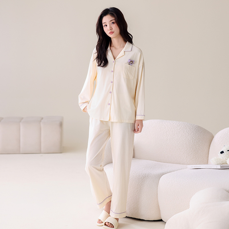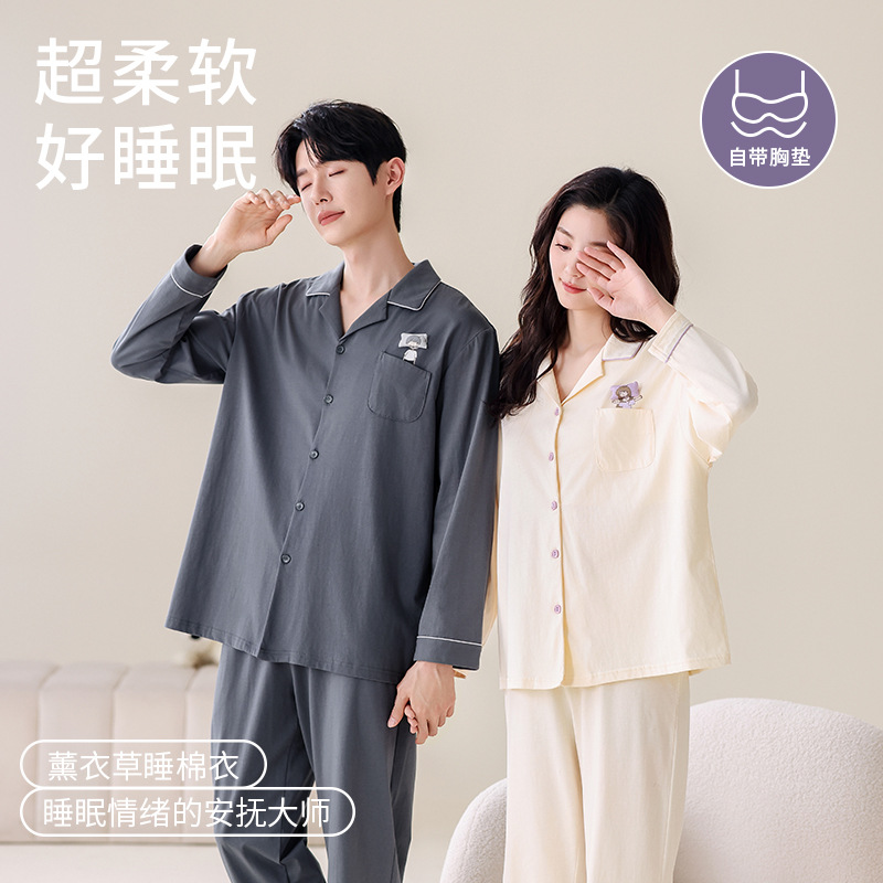 Главная страница > 【Лаванда】Новые весенне-осенние пижамы для пар с подушечками для груди, женский кардиган из чистого хлопка, мужские длинные брюки с длинными рукавами для дома и отдыха