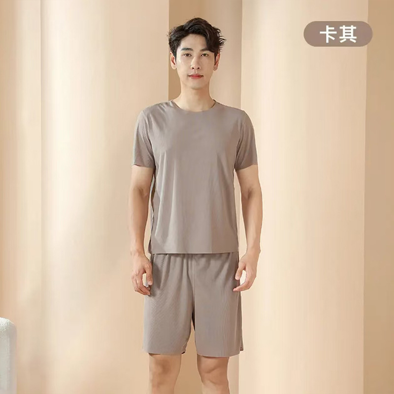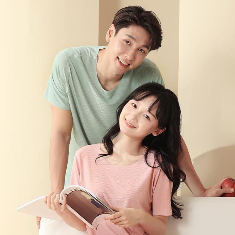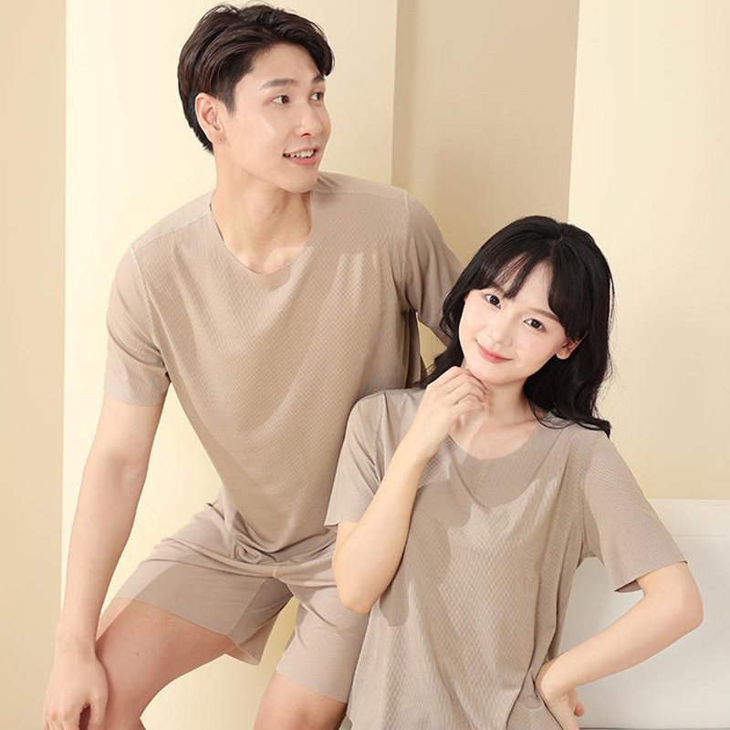 Главная страница > Парная домашняя одежда из ледяного шелка оптом: летний женский комплект с круглым вырезом и короткими рукавами, мужские шорты, пижама из ледяного шелка