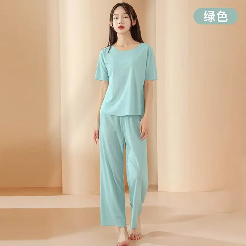 Парная домашняя одежда из ледяного шелка оптом: летний женский комплект с круглым вырезом и короткими рукавами, мужские шорты, пижама из ледяного шелка