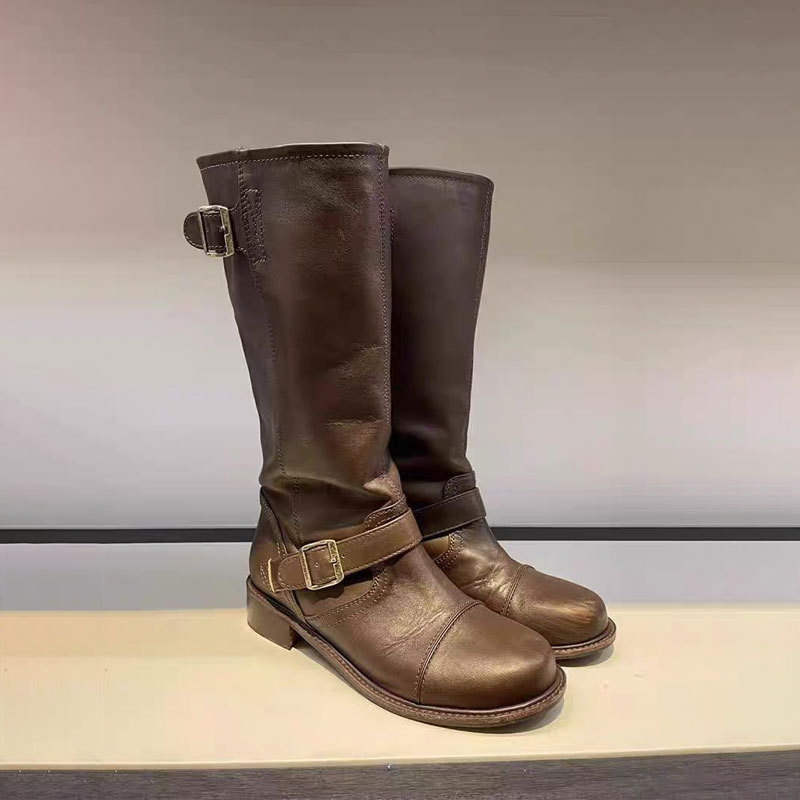 Женские ботинки HOWUS, ботинки в стиле Martin, в том же стиле, из натуральной кожи, корейские, ручной работы, короткие ботинки на низком каблуке, женские мотоциклетные ботинки средней длины до середины икры