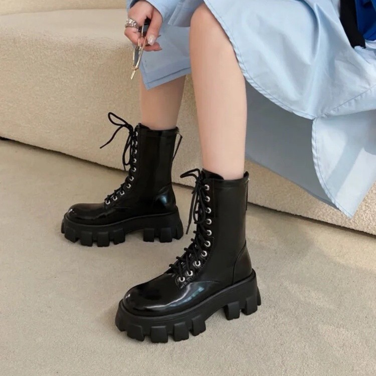 Главная страница > Женские ботинки в стиле мартинс, осень-зима 2024, новые, на толстой подошве, короткие, из блестящей кожи, увеличивающие рост, мотоциклетные ботинки.