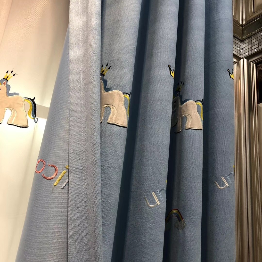 Оптовые продажи новых высококачественных штор и москитных сеток для детских комнат и детских садов с мультяшным рисунком единорога, бархатные, с вышивкой, светонепроницаемые.