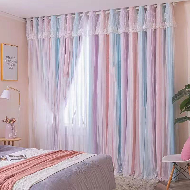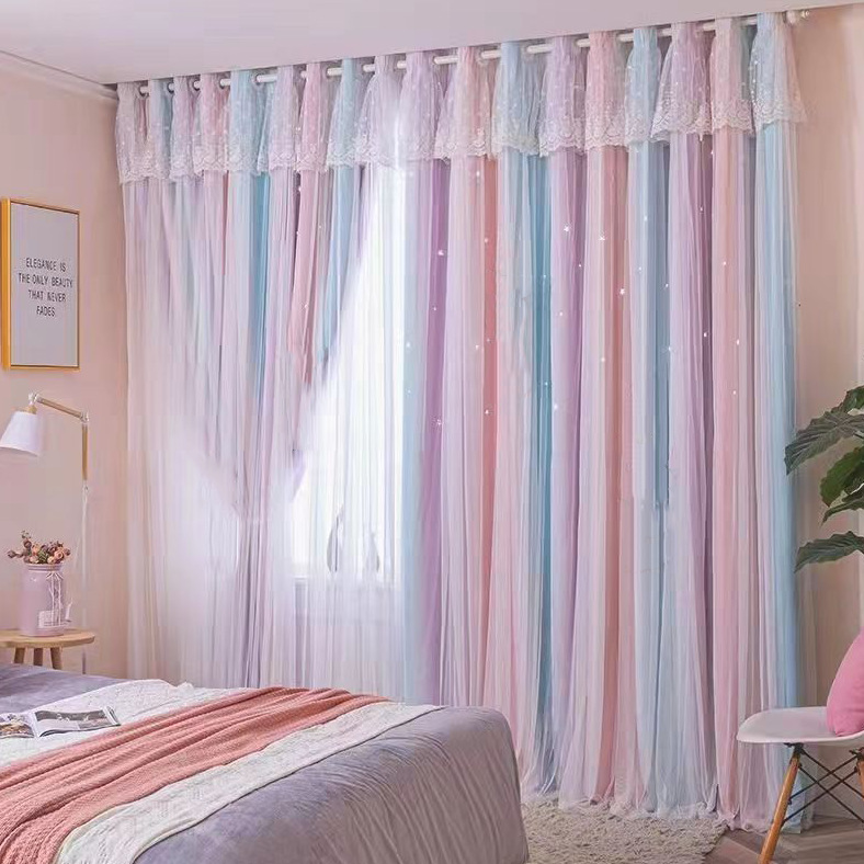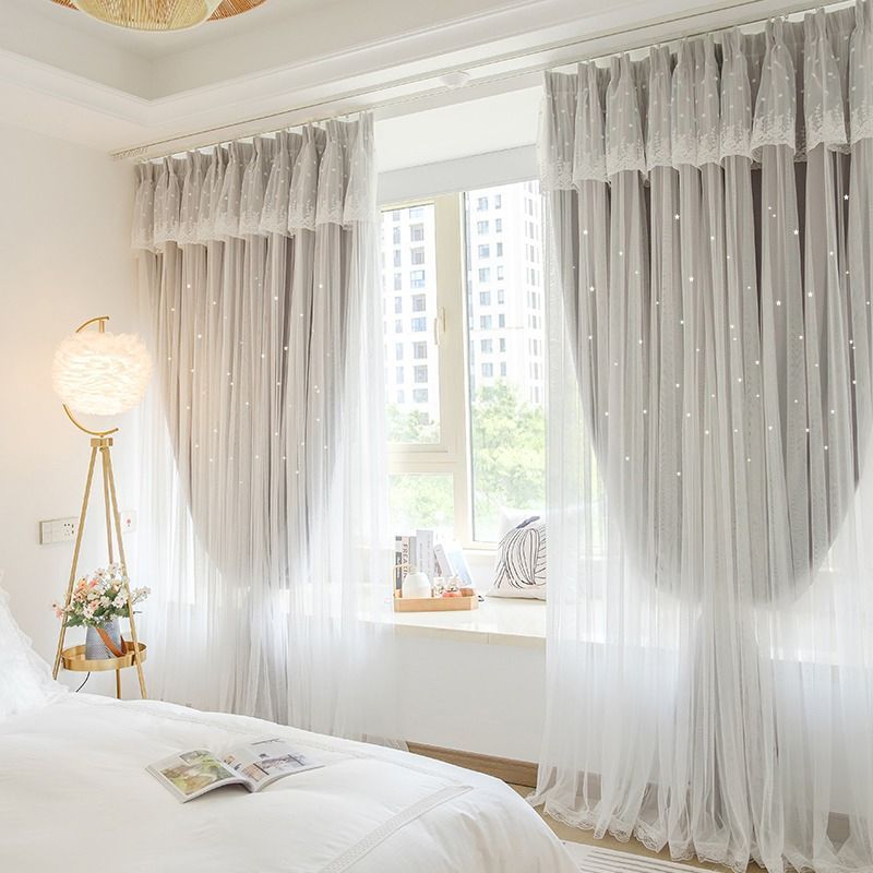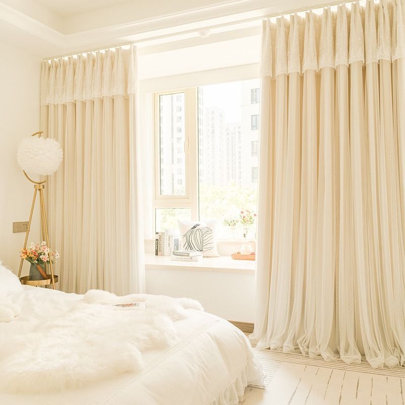 Главная страница > Французские кремовые шторы для спальни, двухслойные затемняющие шторы в стиле инс для девочек, новая модель 2022 года для окон-боковин, романтичные шторы.