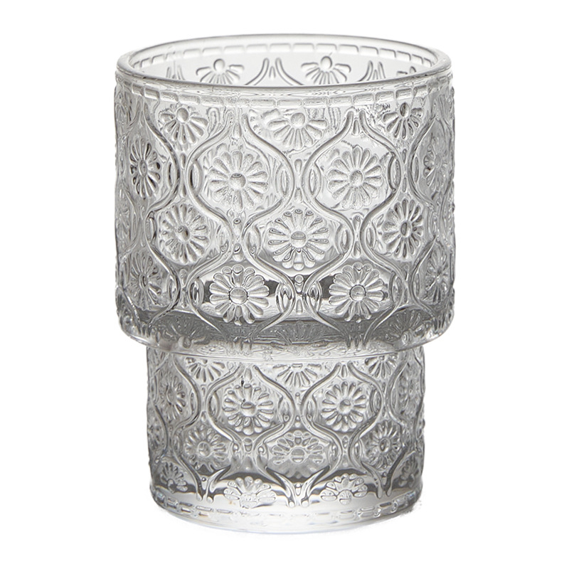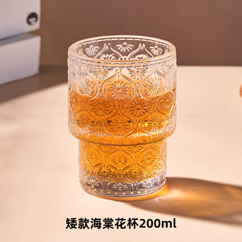 Главная страница > Ниша средне-древняя стеклянная коллекция Штабелируемая тисненая стеклянная подсолнечника Ледник узор Чашка пузырьковая чашка для сока кофе