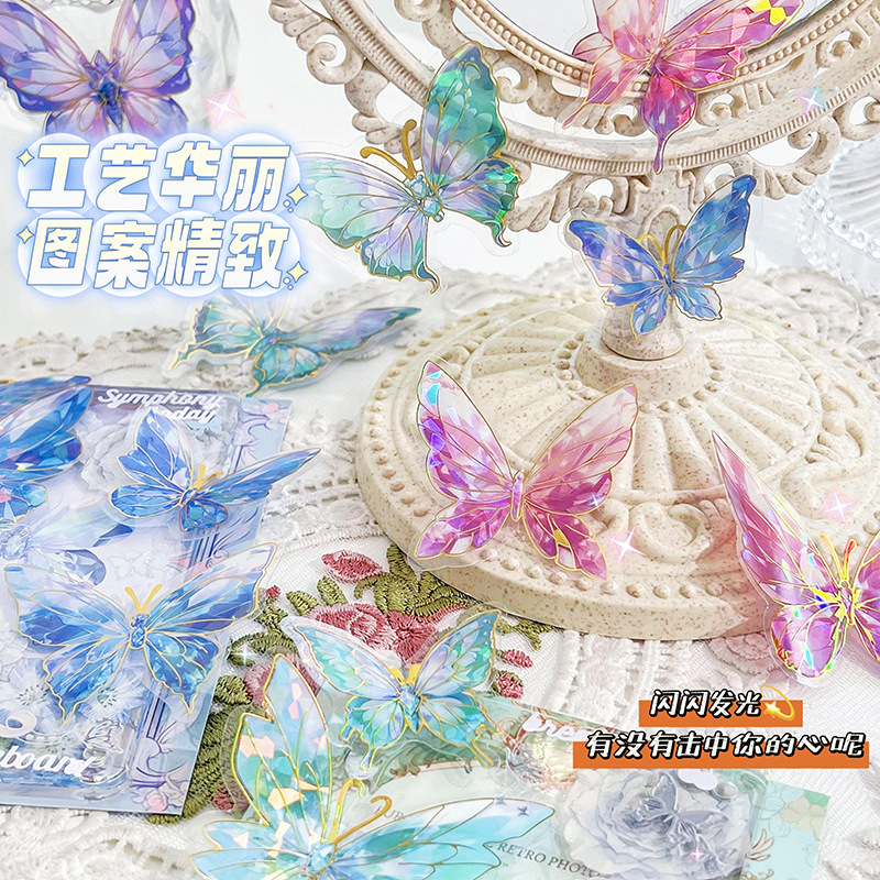 Главная страница > Красочная бабочка горячего тиснения водонепроницаемая ПЭТ-наклейка пакет стерео лазерная карта ручной коллаж декоративный материал DIY наклейки
