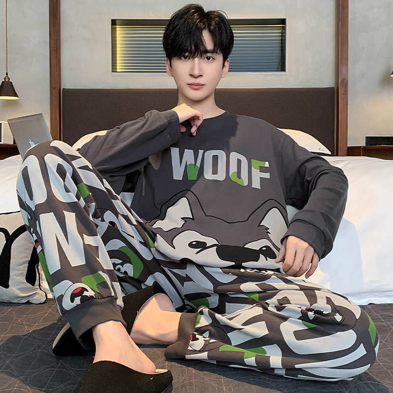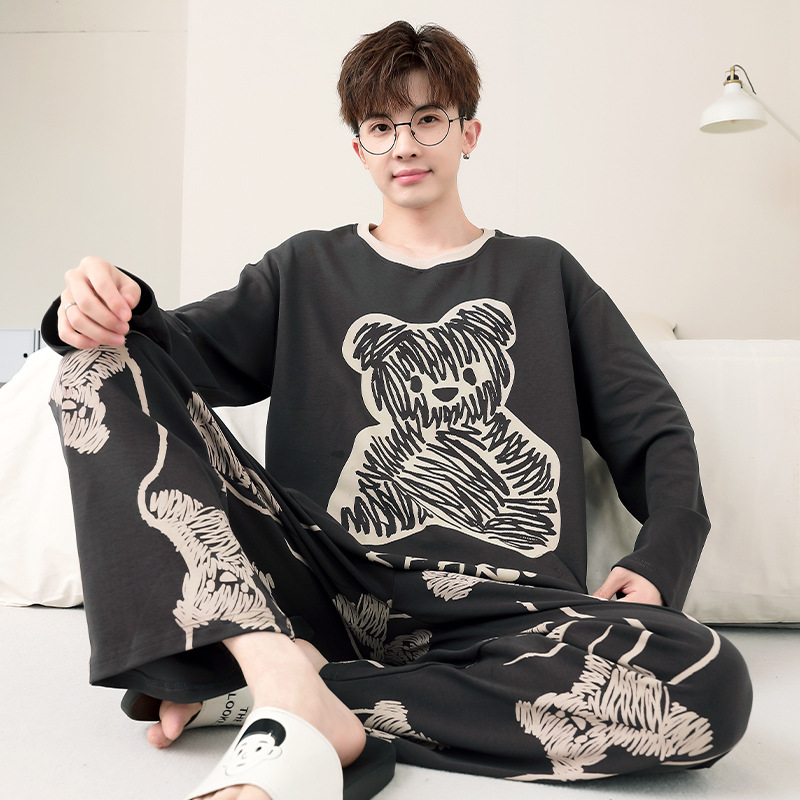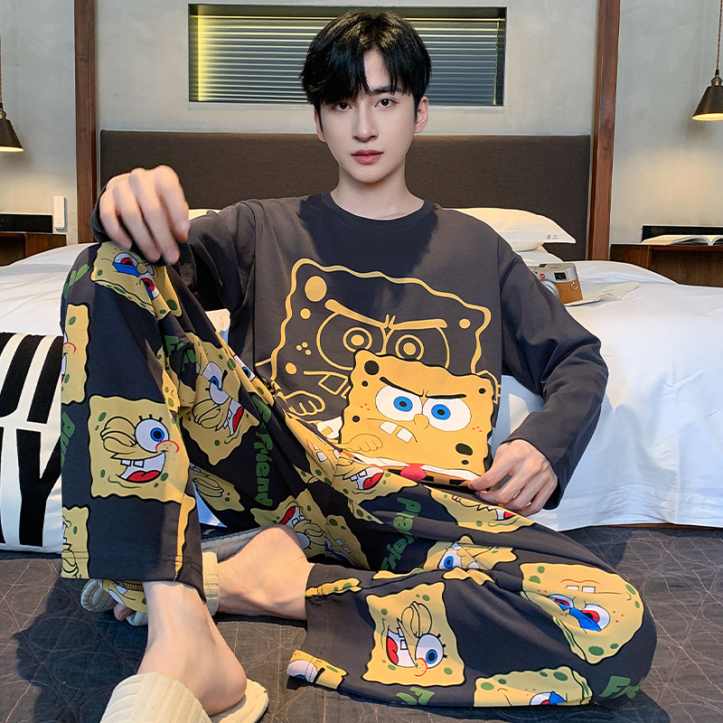 Главная страница > Пижамы больших размеров для мужчин из чистого хлопка с героями мультфильмов для подростков с длинными рукавами из чистого хлопка на весну и осень, студенческая домашняя одежда, костюм для полных