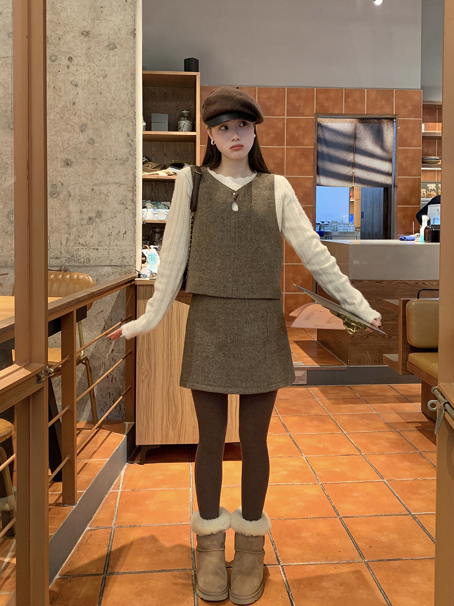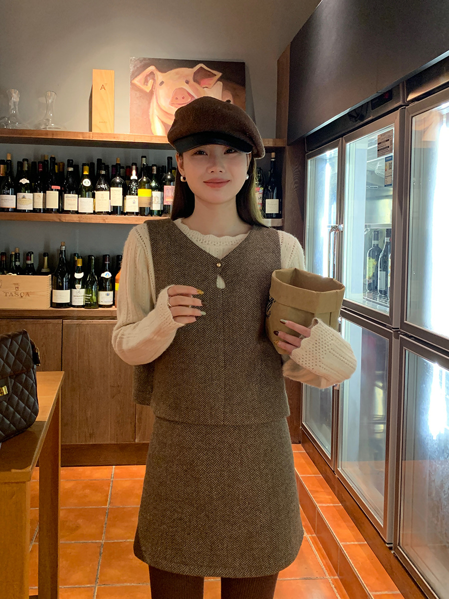 Главная страница > 【Geming】Женский жилет из французского ретро-твида + юбка-карандаш А-силуэта, комплект из двух предметов X4018F