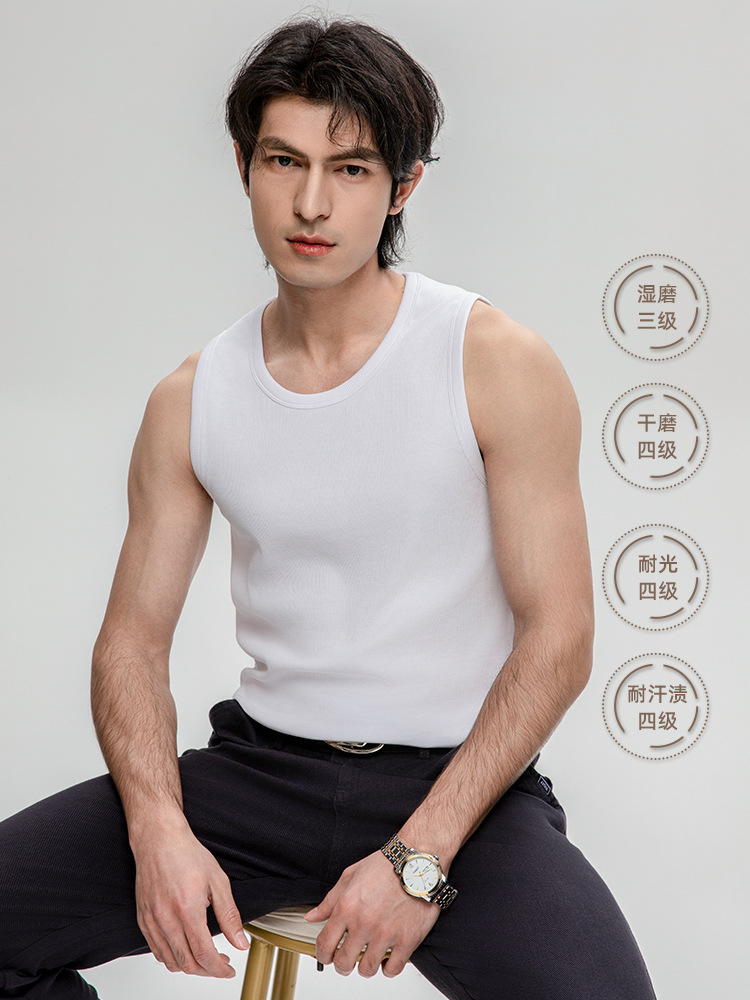Главная страница > Высококачественная футболка без рукавов из конского хлопка с воротником-ложкой в рубчик, спортивный жилет для фитнеса, Мужская молодежная майка