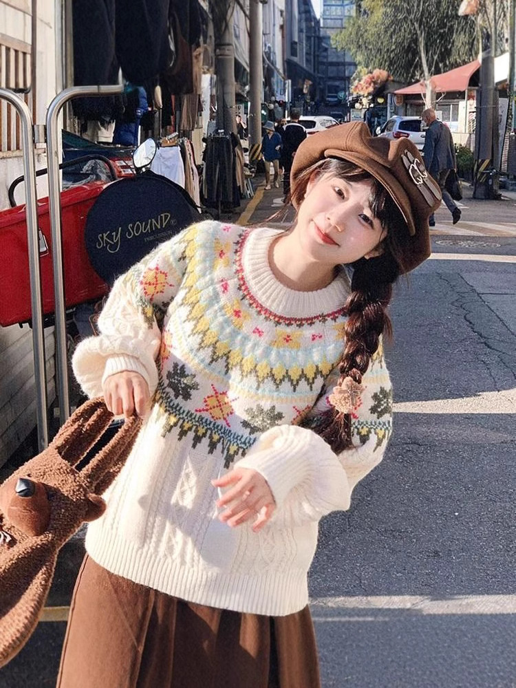 Главная страница > Ye Yuan корейская версия свитера Fair Island женский осень и зима 2024 новый корейский ленивый стиль премиум-класса трикотажный топ