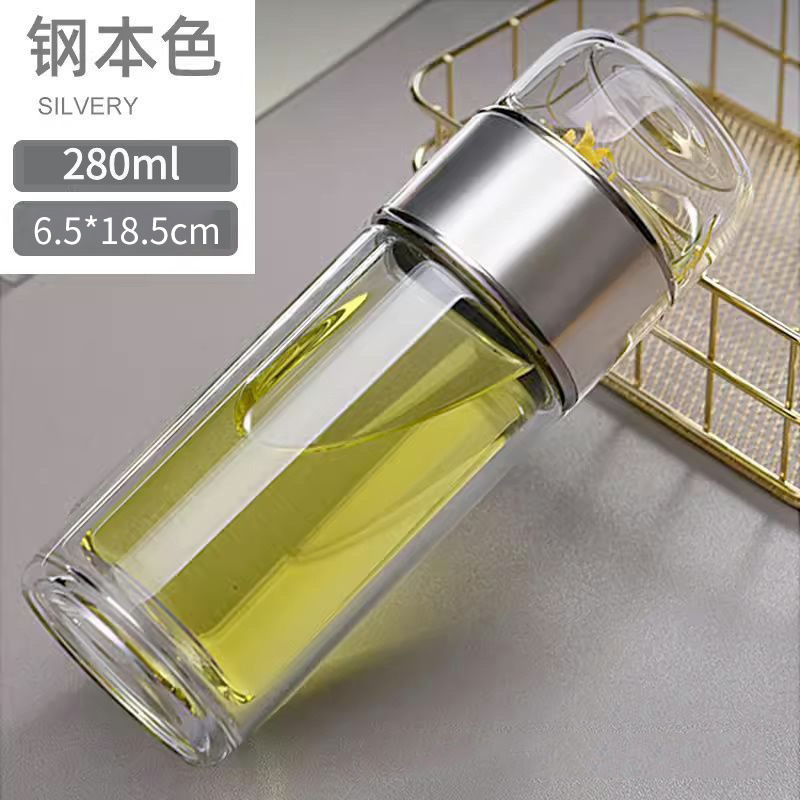 Цвет стали [Стеклянная крышка Сепаратор чайной воды Двухслойный антиошпаренный]-280мл