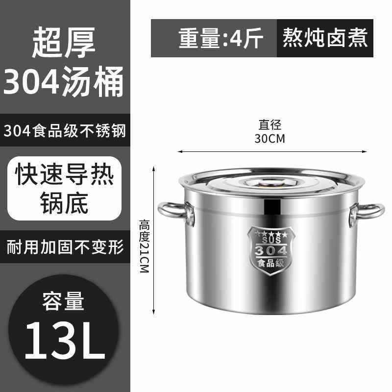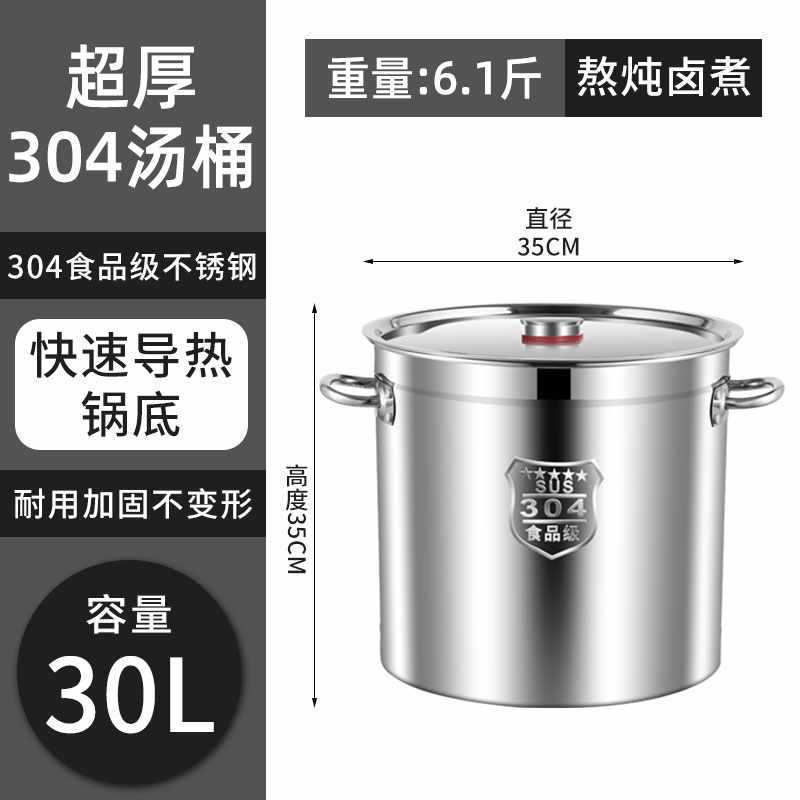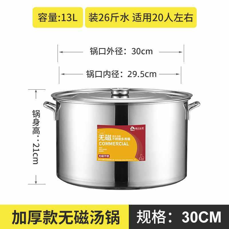 Главная страница > Круглая суповая кастрюля большой емкости 304, утолщенное бытовое ведро для кипячения воды, кастрюля для тушения, ведро из нержавеющей стали с крышкой, коммерческое ведро для супа, ведро для рассола