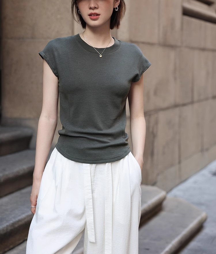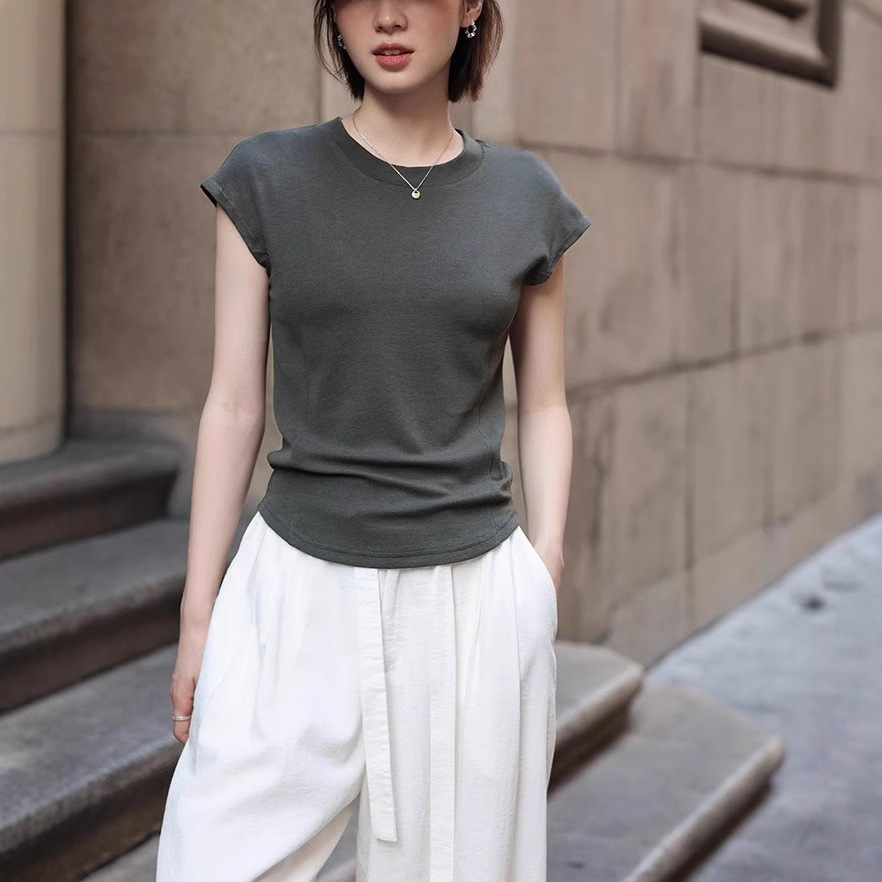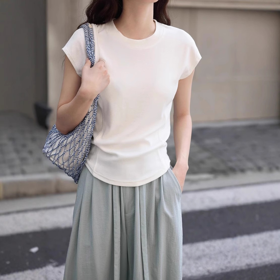 1313 Костная линия тонкая! Белая темпераментная футболка с рукавами женская короткая рубашка с тонким рукавом повседневная рубашка с круглым вырезом