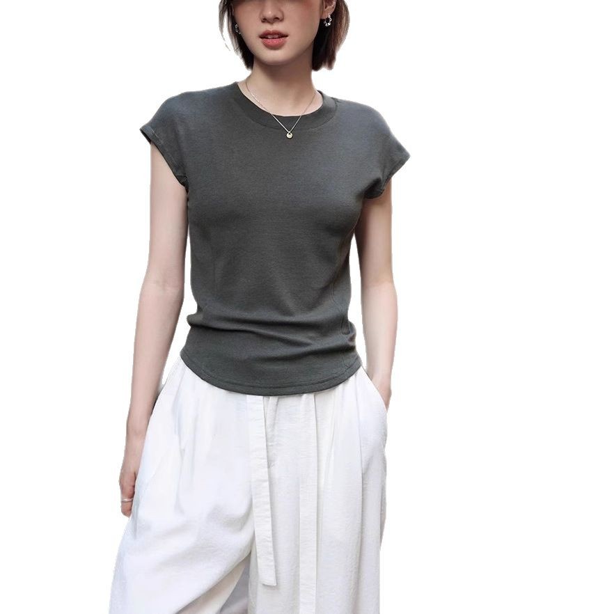 Главная страница > 1313 Костная линия тонкая! Белая темпераментная футболка с рукавами женская короткая рубашка с тонким рукавом повседневная рубашка с круглым вырезом