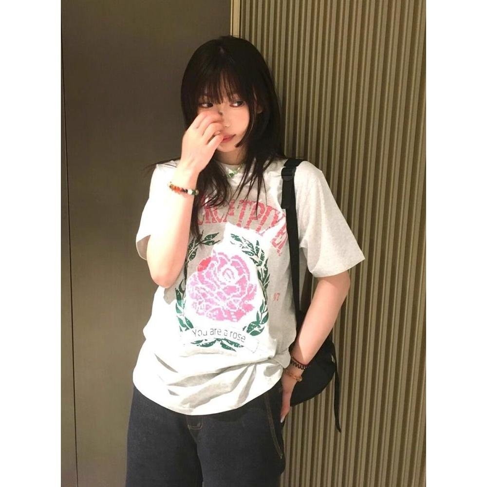 Главная страница > Американский стиль bf хлопчатобумажная футболка с короткими рукавами женская футболка с короткими рукавами с принтом полурукава футболка на одежде простая модная маркировка ins