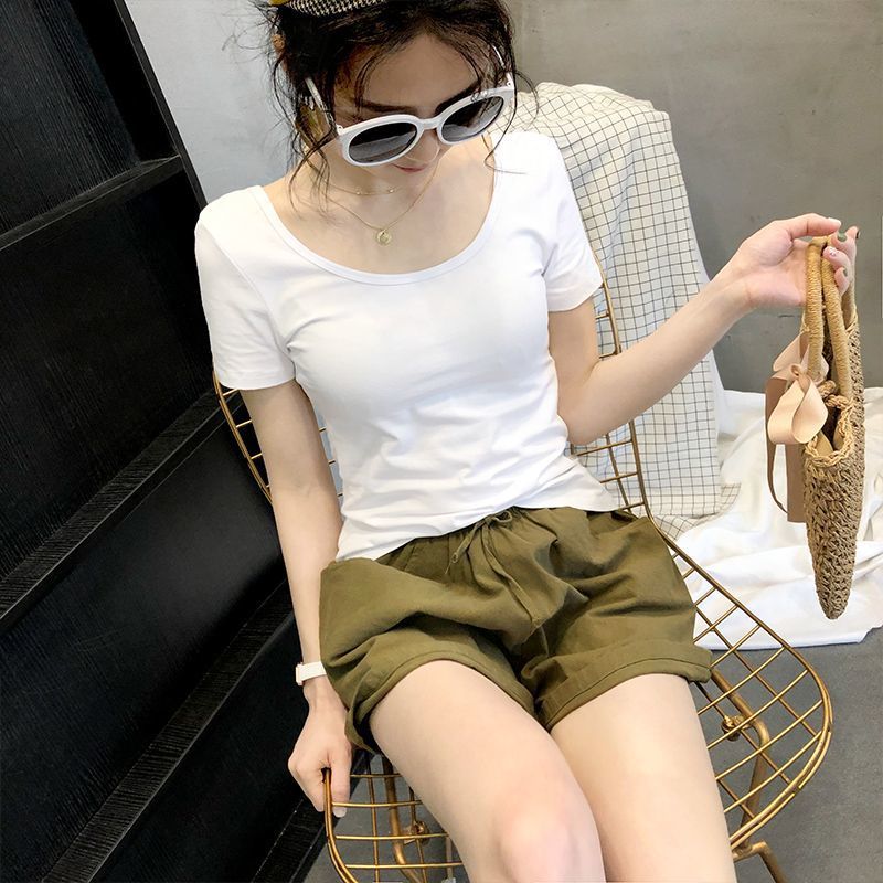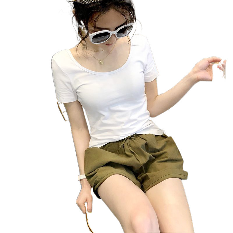 Главная страница > Белая футболка женская короткая рубашка с коротким рукавом 2023 тренд низкий воротник узкий воротник