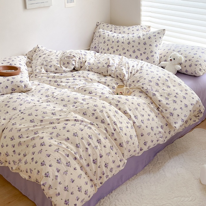 Толстая двухслойная пряжа из четырех частей набор постельных принадлежностей мультфильм милые простыни одеяло одеяло одеяло одеяло хлопчатобумажное общежитие набор из трех частей
