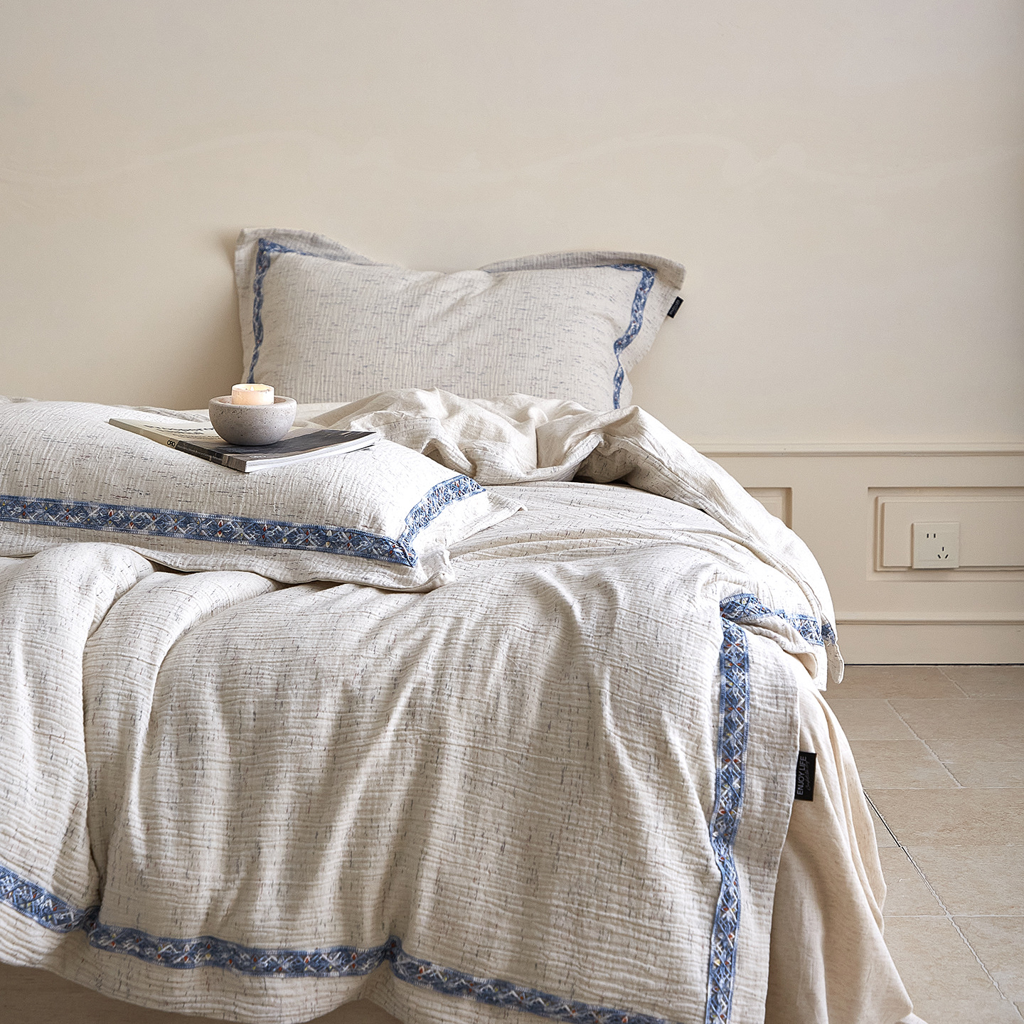Главная страница > Тонизирующий хлопок и лен | Жаккардовые простыни и пододеяльник класса А из хлопка и льна, набор из четырех предметов, постельное белье из 20% льна, простой стиль B&B