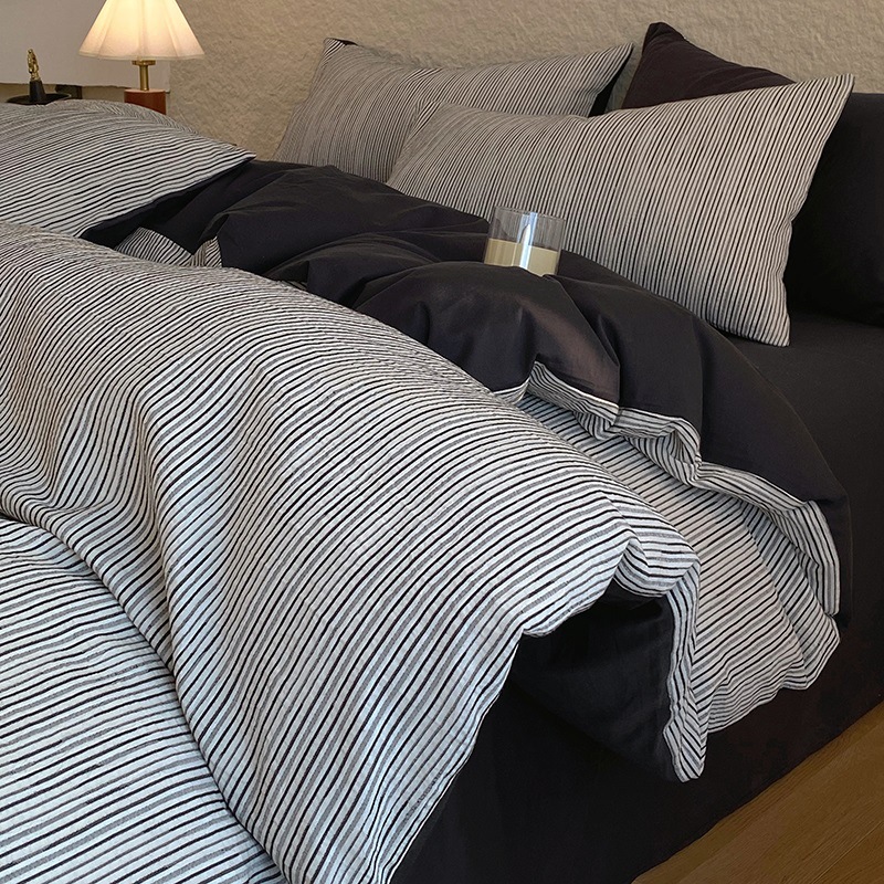 - Комплект из четырех предметов Простыня длиной 1,5 м — подходит для одеяла размером 200x230.
