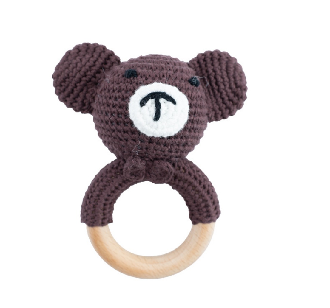 Выгравированный логотип детская погремушка ручной работы деревянная шерстяная погремушка крючком Детские коренные зубы Успокаивающая игрушка ручная погремушка