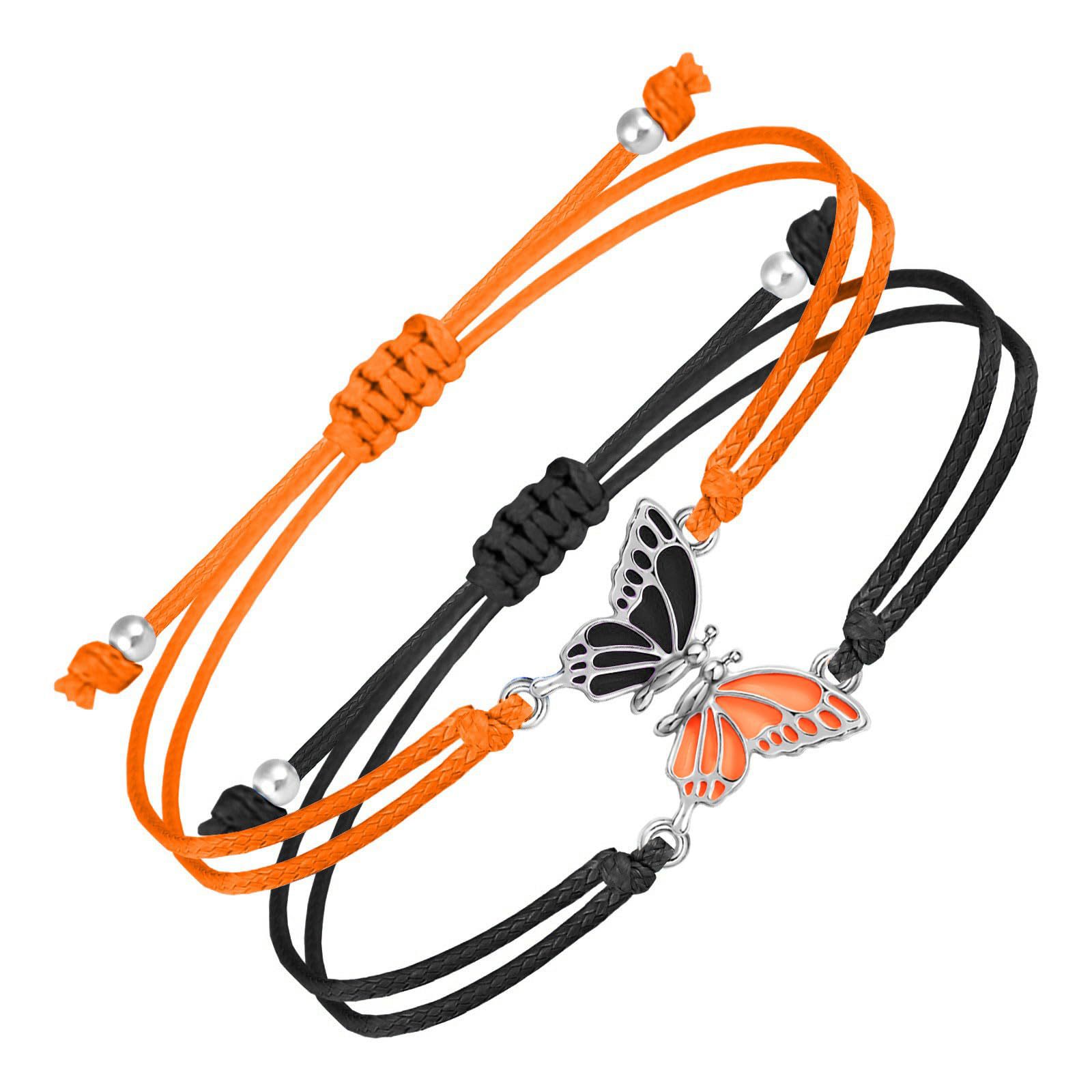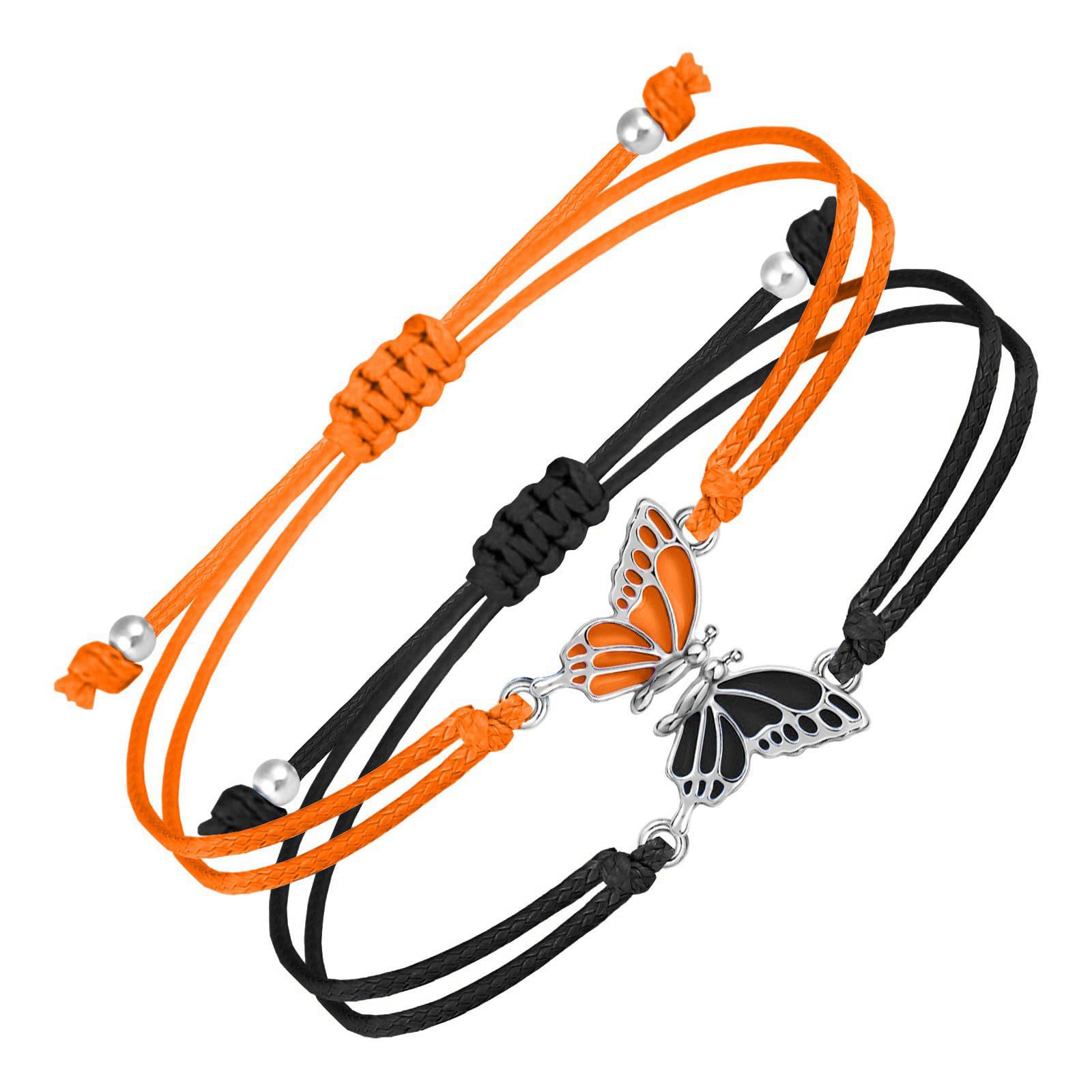 Набор браслетов «Черный + Оранжевый Бабочка»
