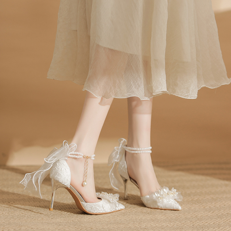 2024 новые белые туфли на высоком каблуке женские свадебные платья