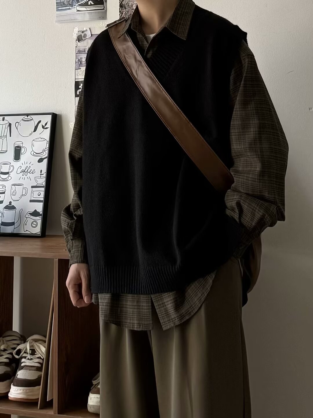 Главная страница > B Восточный Японский мужской осенью и зимой Корейский повседневный свободный вязаный свитер жилет сплошной цвет нейтральная пара жилет для мужчин и женщин