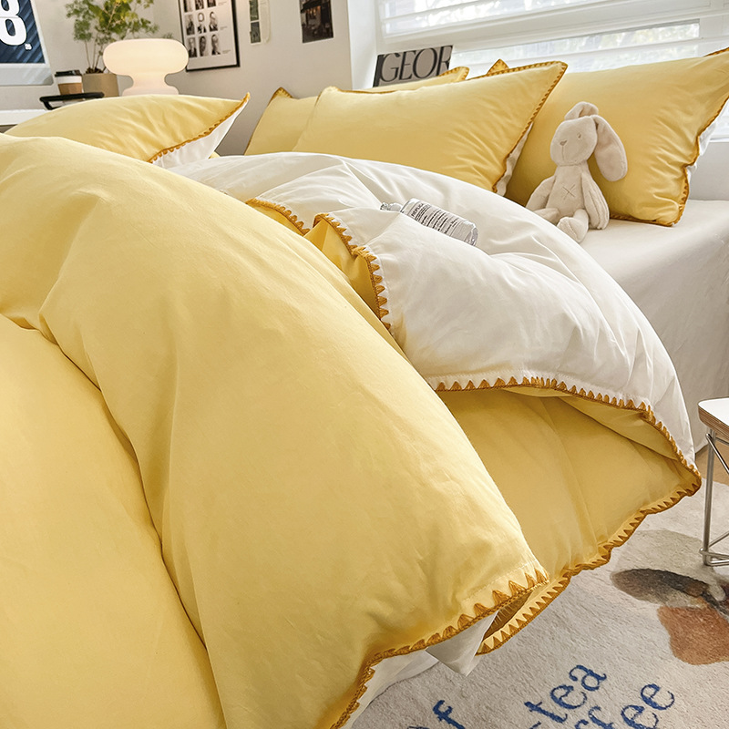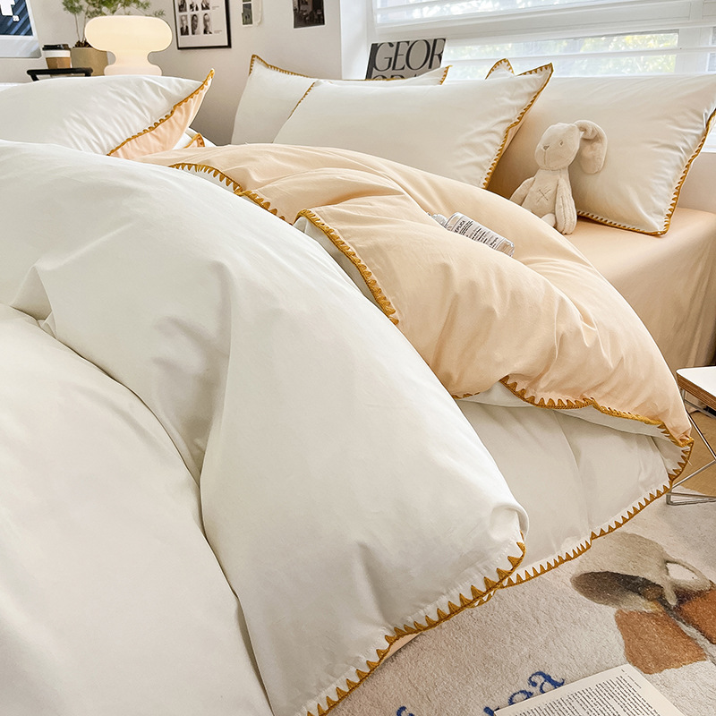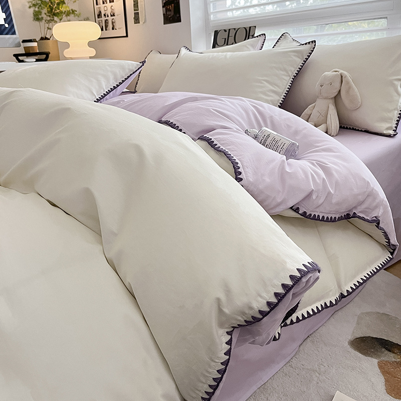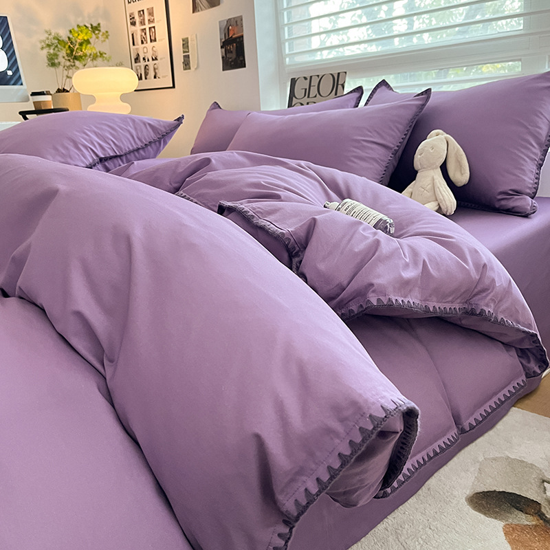 - Комплект из четырех предметов простыни 2,0 м, пододеяльник 2,2*2,4 м, простыня 2,45*2,7 м*2