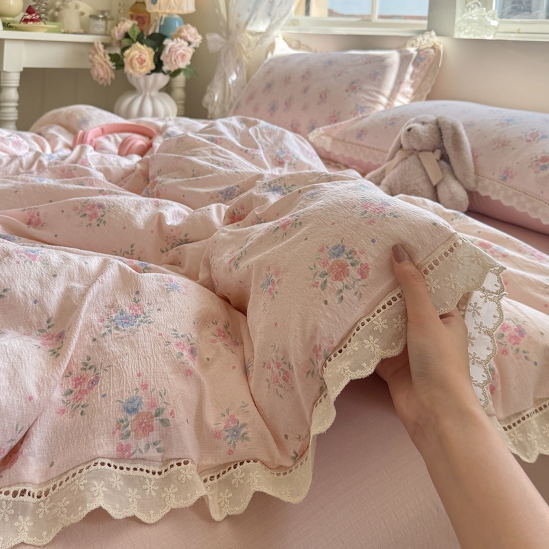 Главная страница > Осенний комплект постельного белья из двухслойной марли, четыре предмета, в стиле принцессы, с ажурным кружевом, пододеяльник, комплект постельного белья из Наньтуня, три предмета, простыня для общежития
