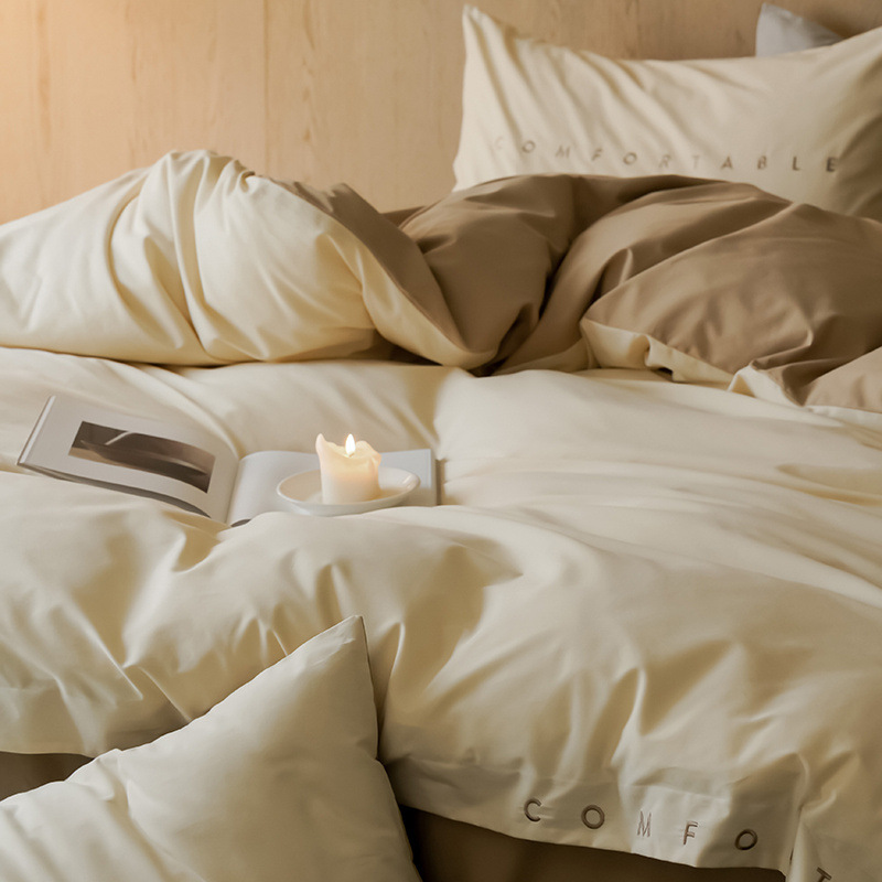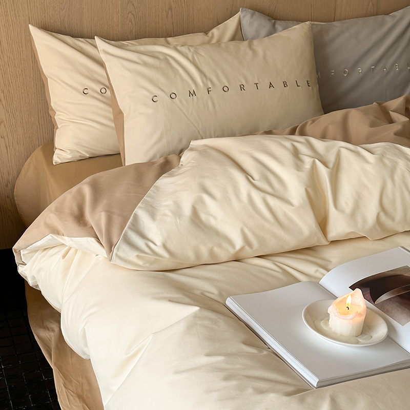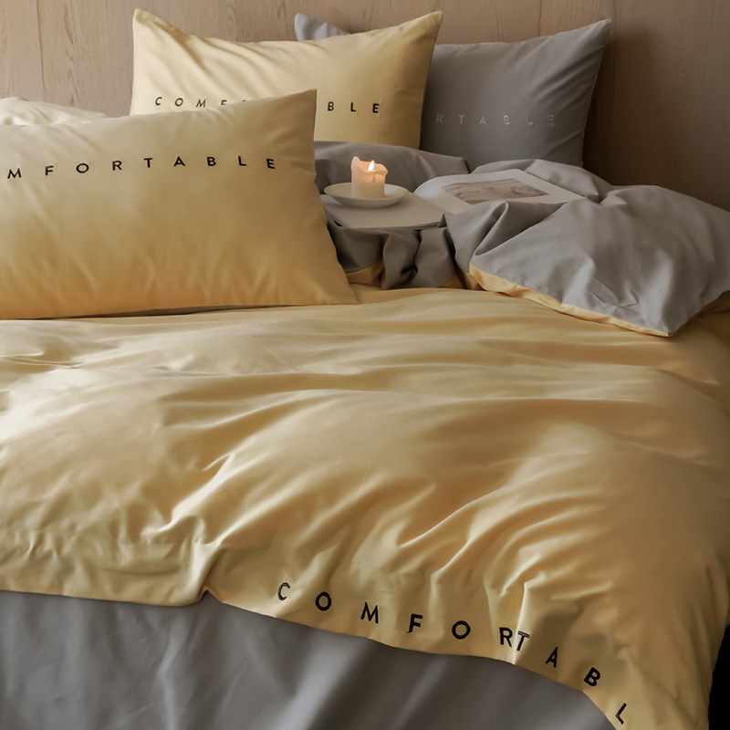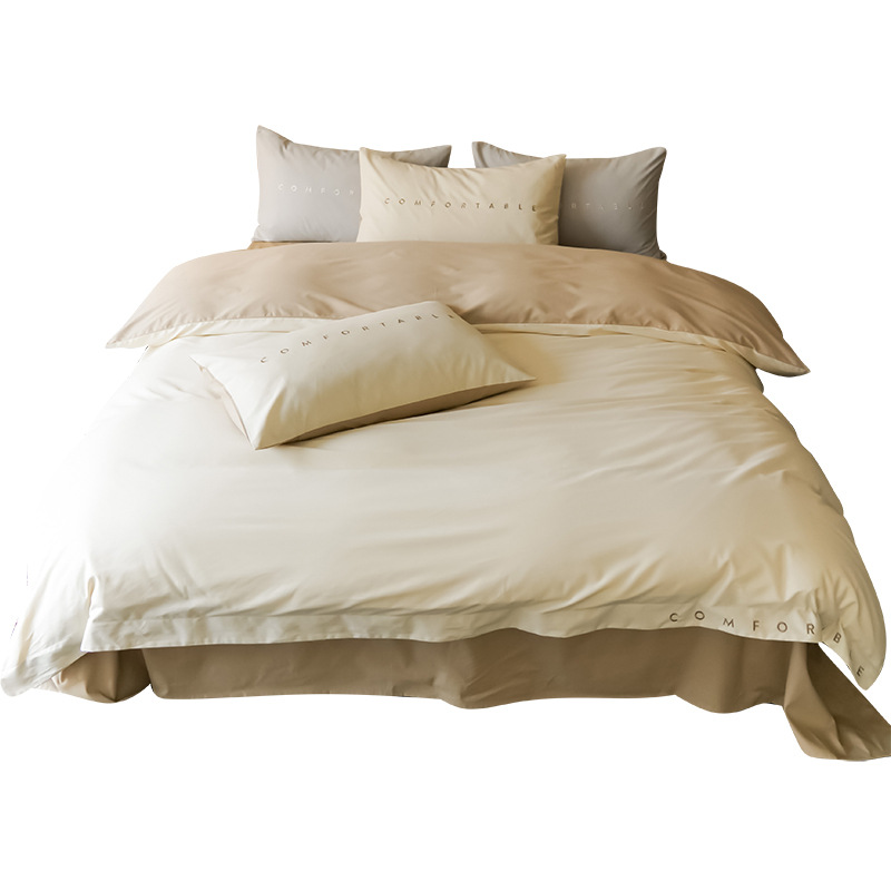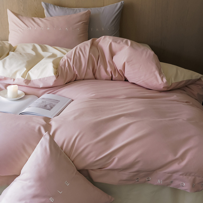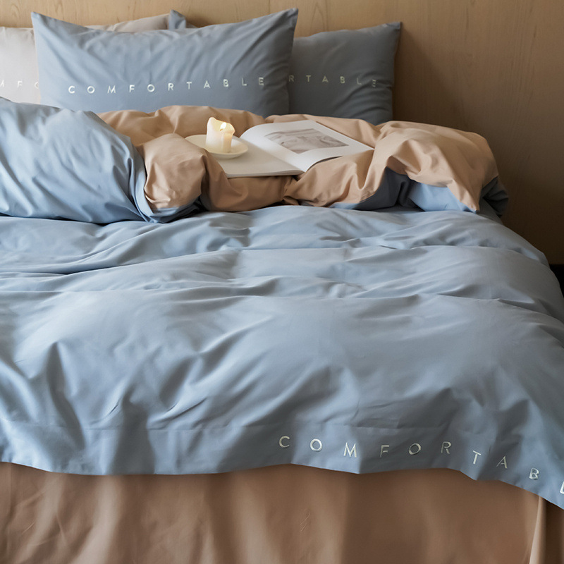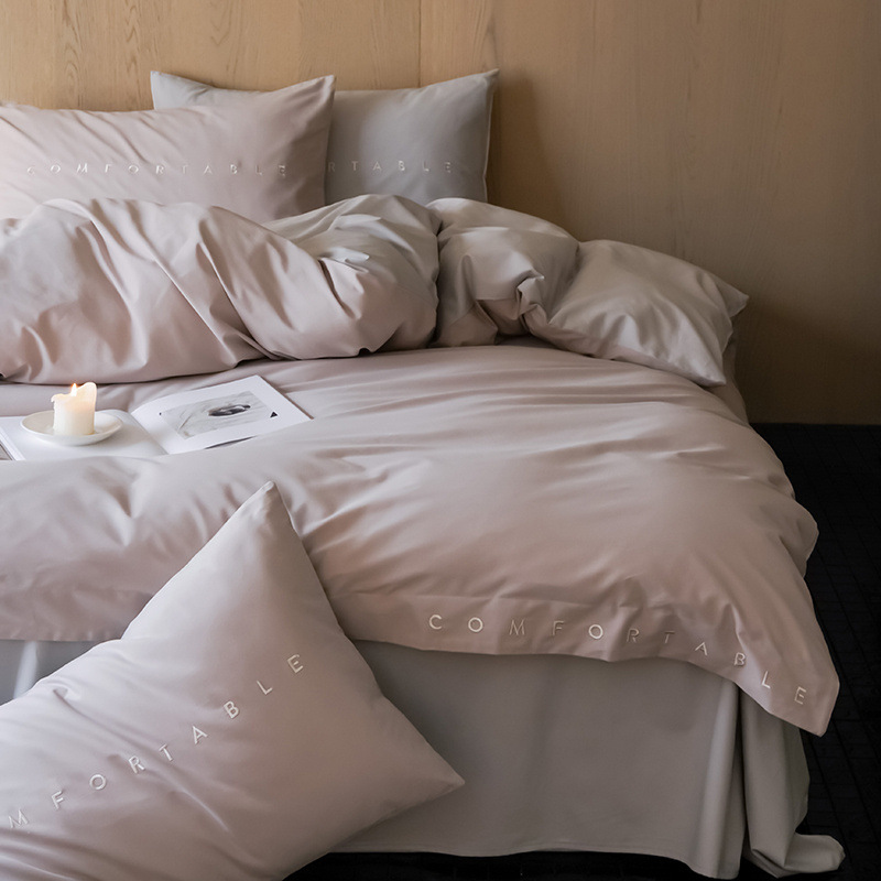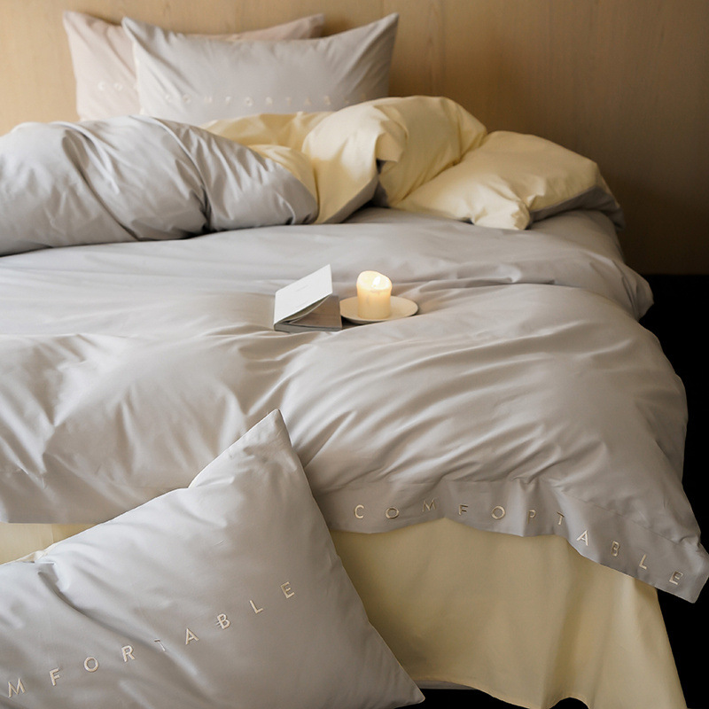 Главная страница > 100 длинноволокнистых хлопковых постельных принадлежностей с вышивкой из четырех предметов, легкая Роскошная однотонная Простыня из чистого хлопка с начесом, однотонная простыня, пододеяльник, простыня