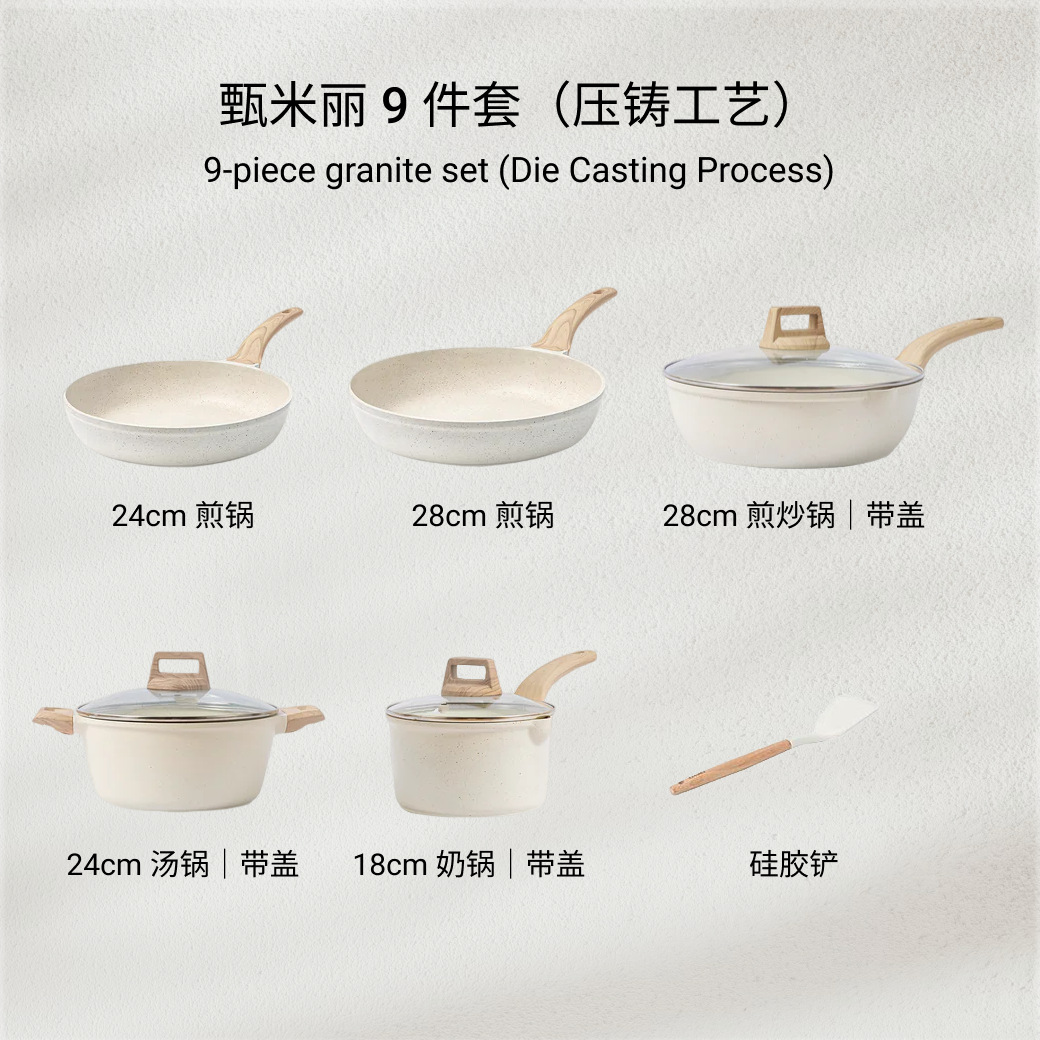 Главная страница > Набор кухонной посуды из гранита для трансграничной торговли, полный комплект, медицинский рисовый камень, антипригарная сковорода, кастрюля