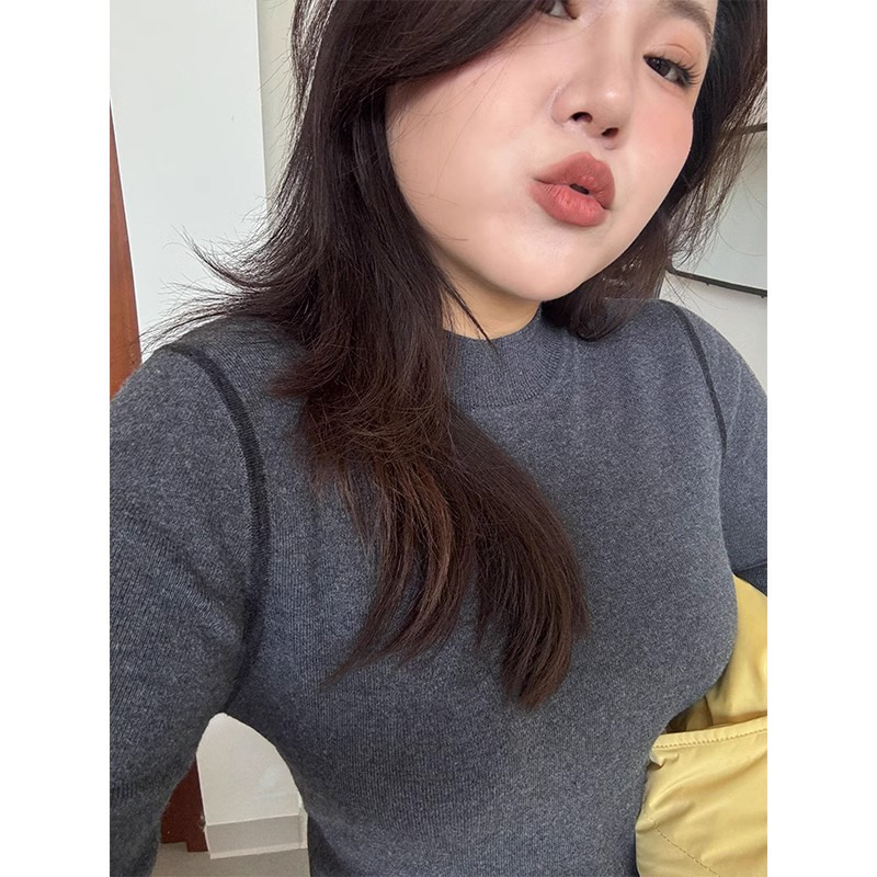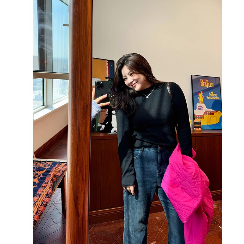 Muzi идеальный большой размер женский фундамент дикий полувысокий воротник нижняя рубашка толстый мм осенний и зимний свитер