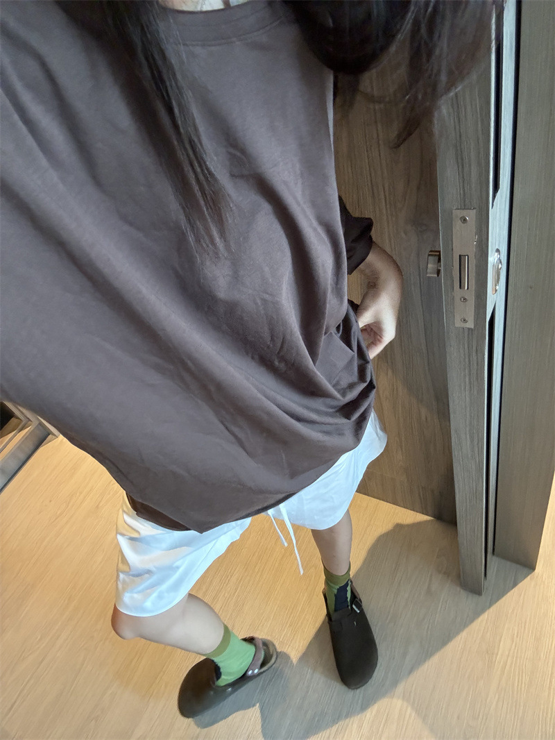 Главная страница > Футболка с нижней частью половины тела, новинка лета 2024, свободный повседневный женский топ с короткими рукавами средней длины, закрывающий ягодицы