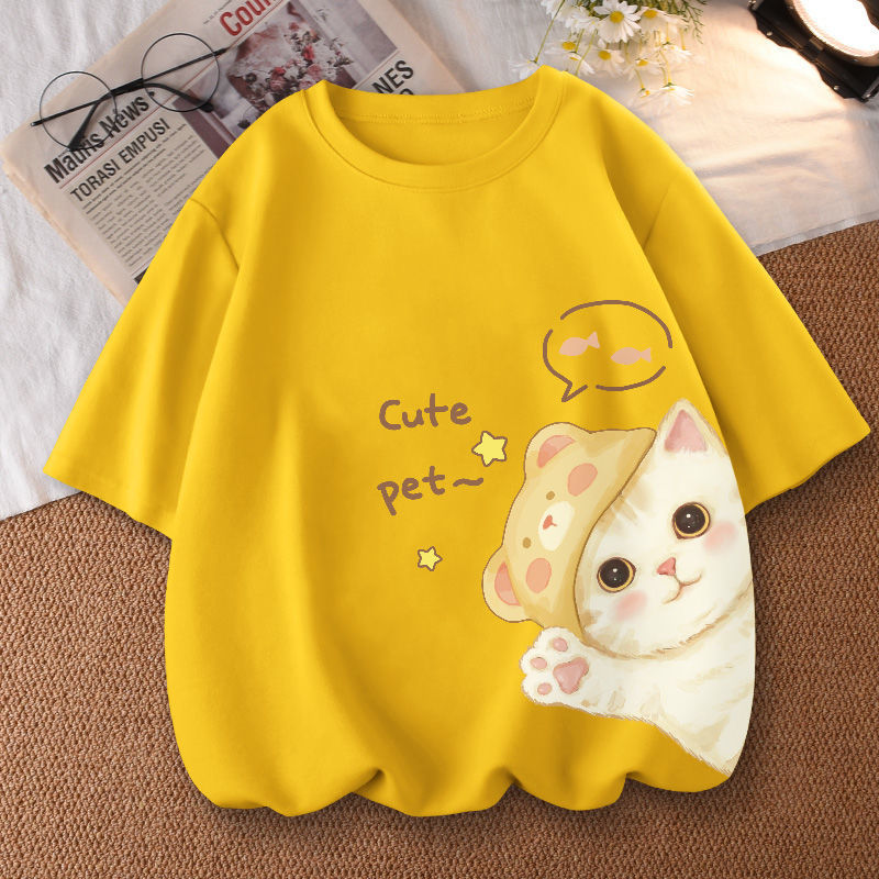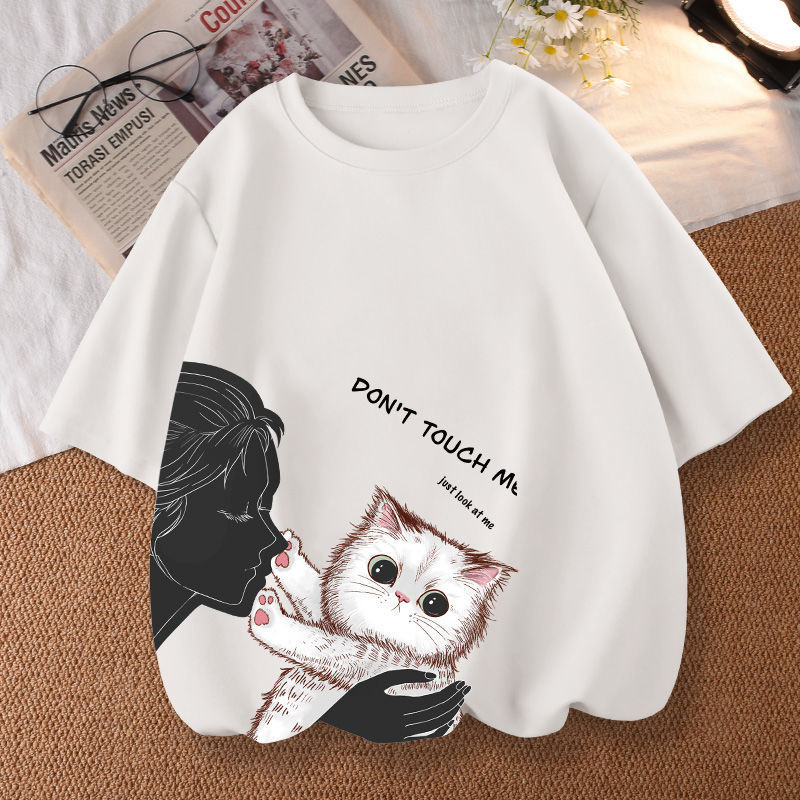 Главная страница > Летняя футболка женская, топы с короткими рукавами, новинка 2025 года, летняя одежда из чистого хлопка, нишевый дизайн, женские футболки с половиной рукавов