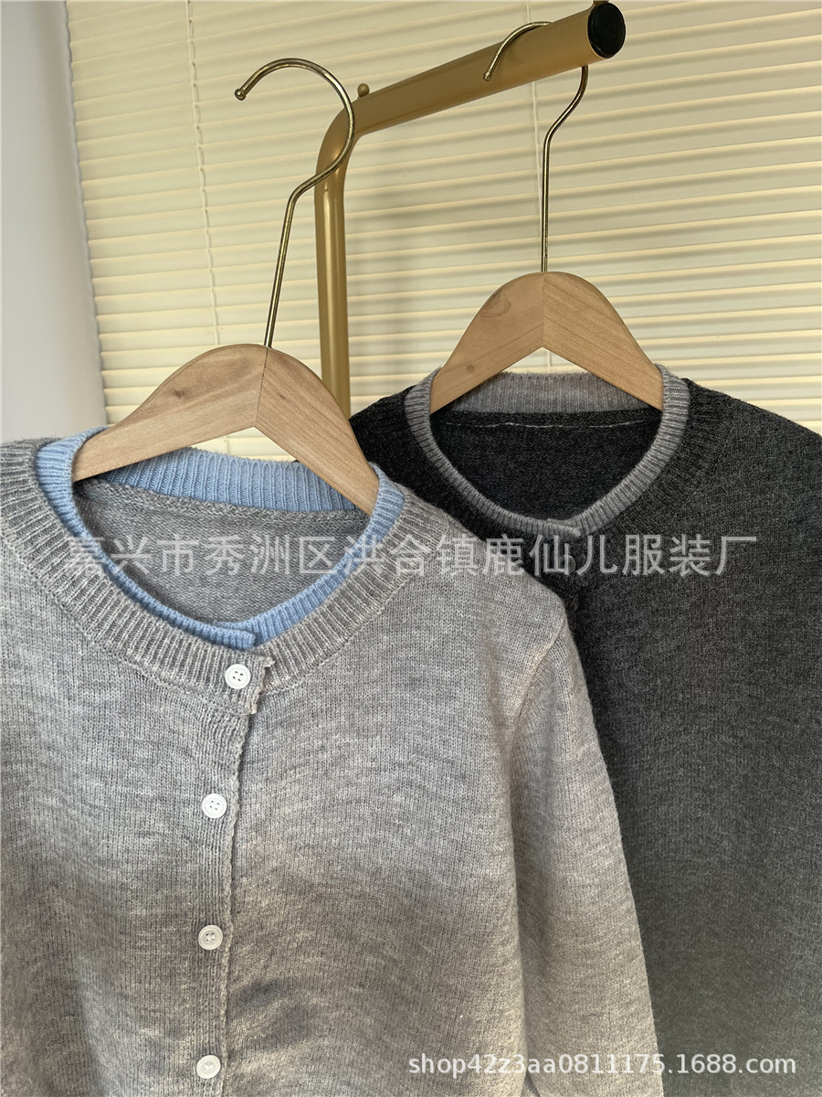 Главная страница > Серый вязаный кардиган-костюм из двух частей для женщин, новинка 2025 года, ранняя осень, круглый вырез, облегающий крой, высококачественная женская одежда.