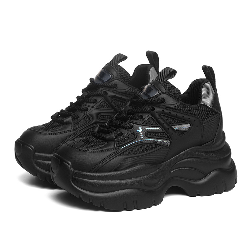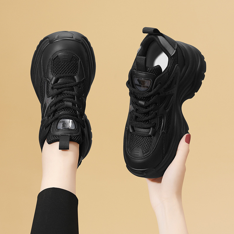 Главная страница > Женские кроссовки на флисовой подкладке, мода осень-зима 2025, универсальные кроссовки на толстой подошве из мягкой кожи, черные прогулочные туфли с увеличением роста.