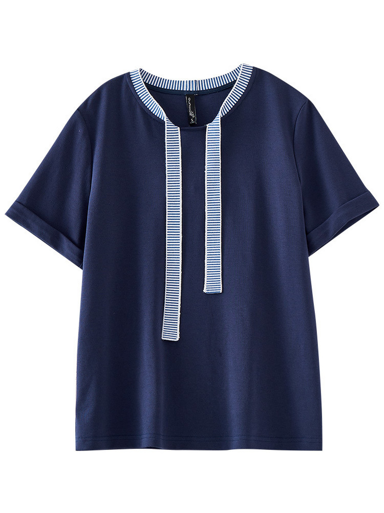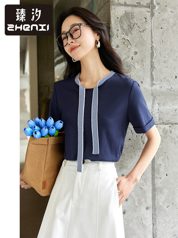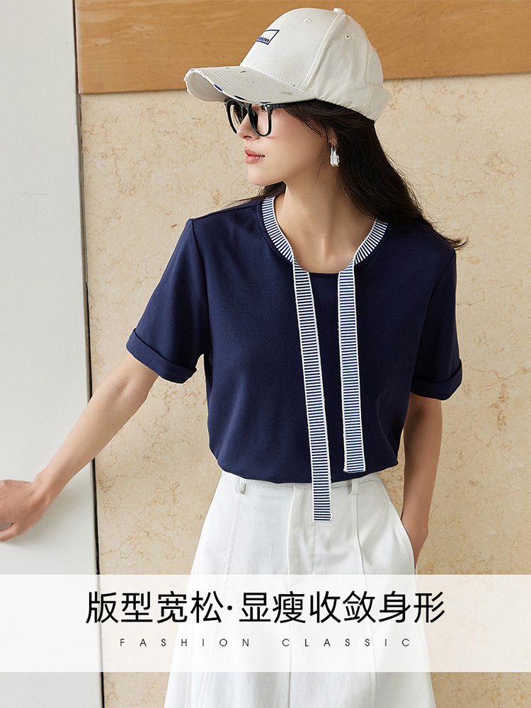 Главная страница > Zhen Xi новый полосатый ремешок с круглым вырезом хлопчатобумажная футболка женский короткий рукав модный повседневный свободный топ SQ755