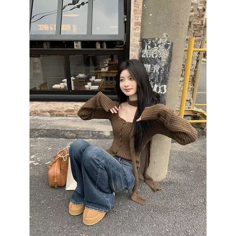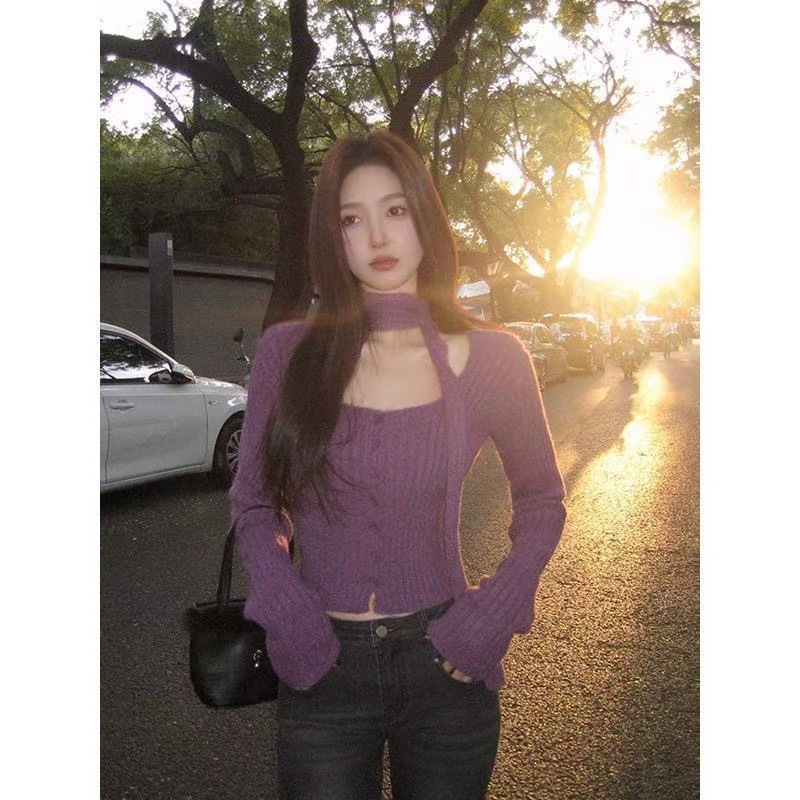 Чистая горячая девушка тонкая вязаная рубашка женская 2024 осень и зима квадратный воротник дикий нижний свитер