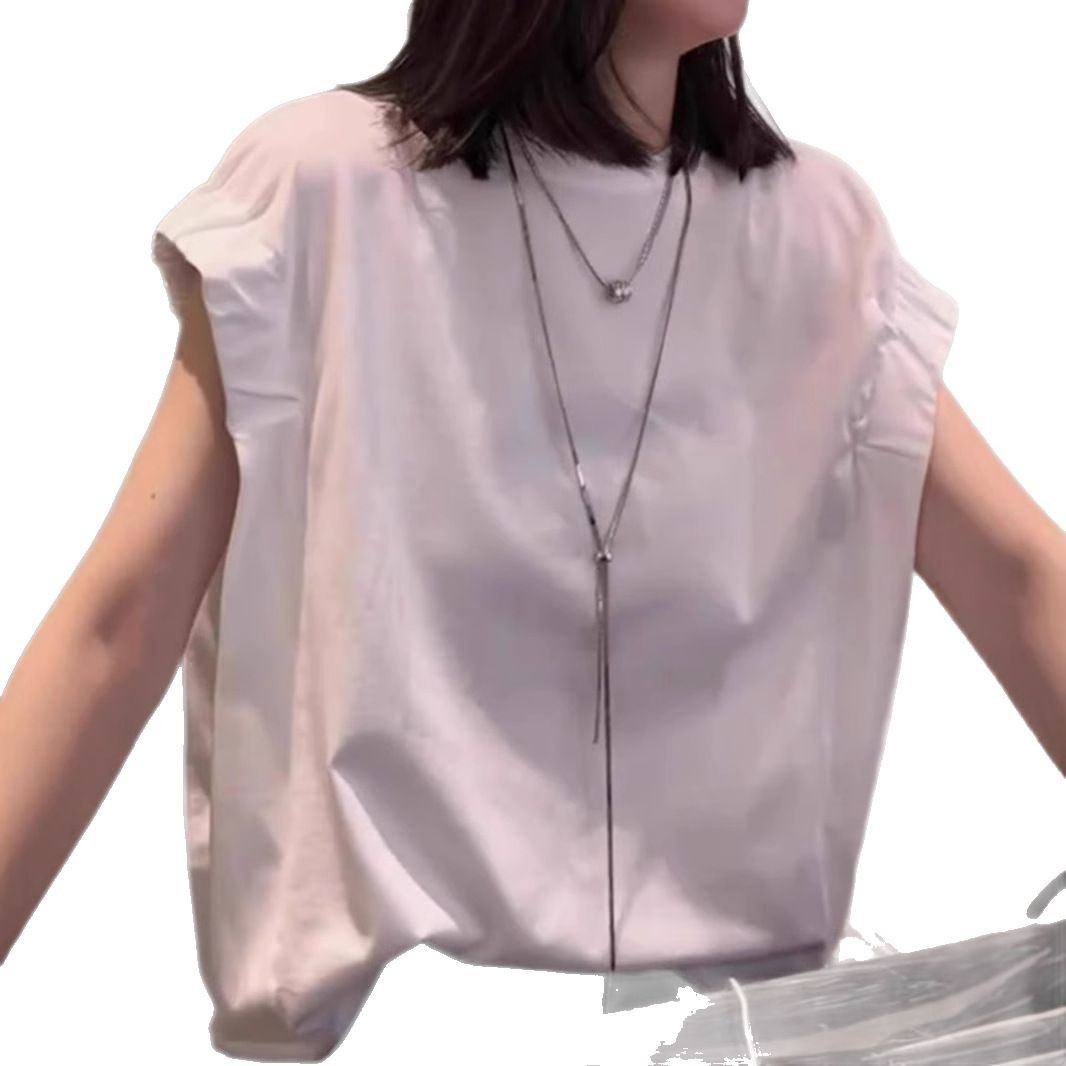 Корейская футболка с круглым вырезом женская свободная повседневная иностранная маленькая летающая рукава модный темперамент без рукавов носить сплошной топ 2025