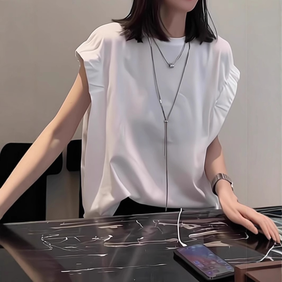 Главная страница > Корейская футболка с круглым вырезом женская свободная повседневная иностранная маленькая летающая рукава модный темперамент без рукавов носить сплошной топ 2025