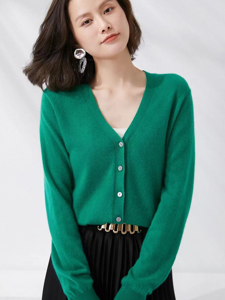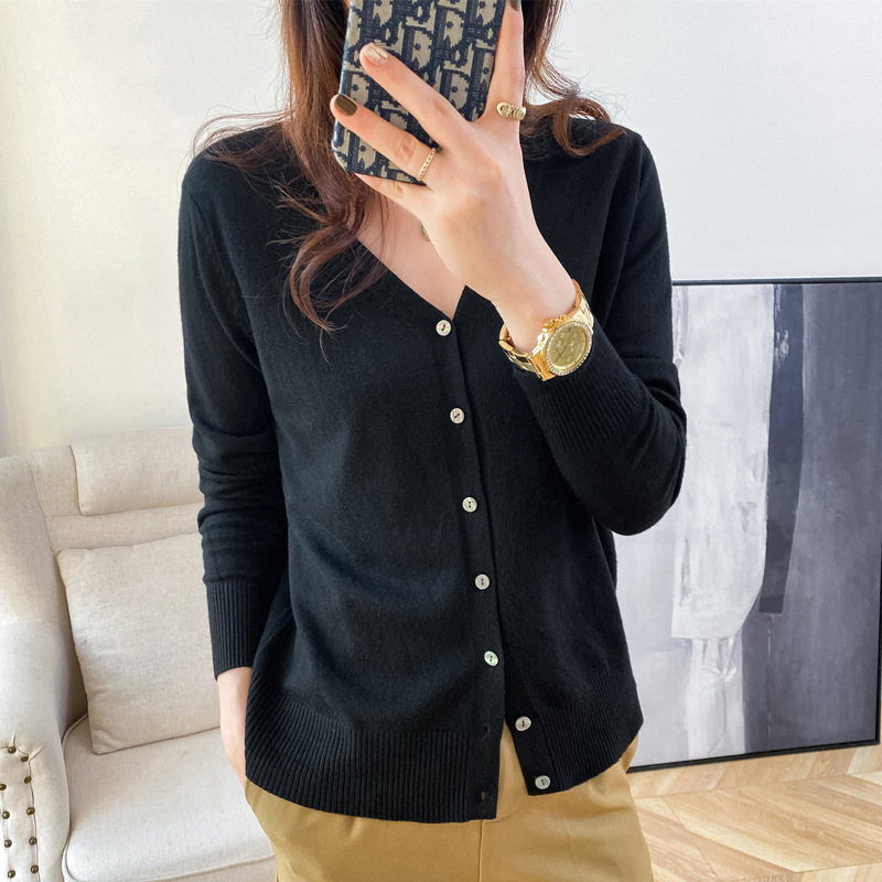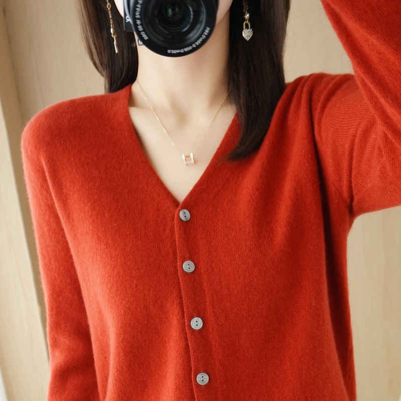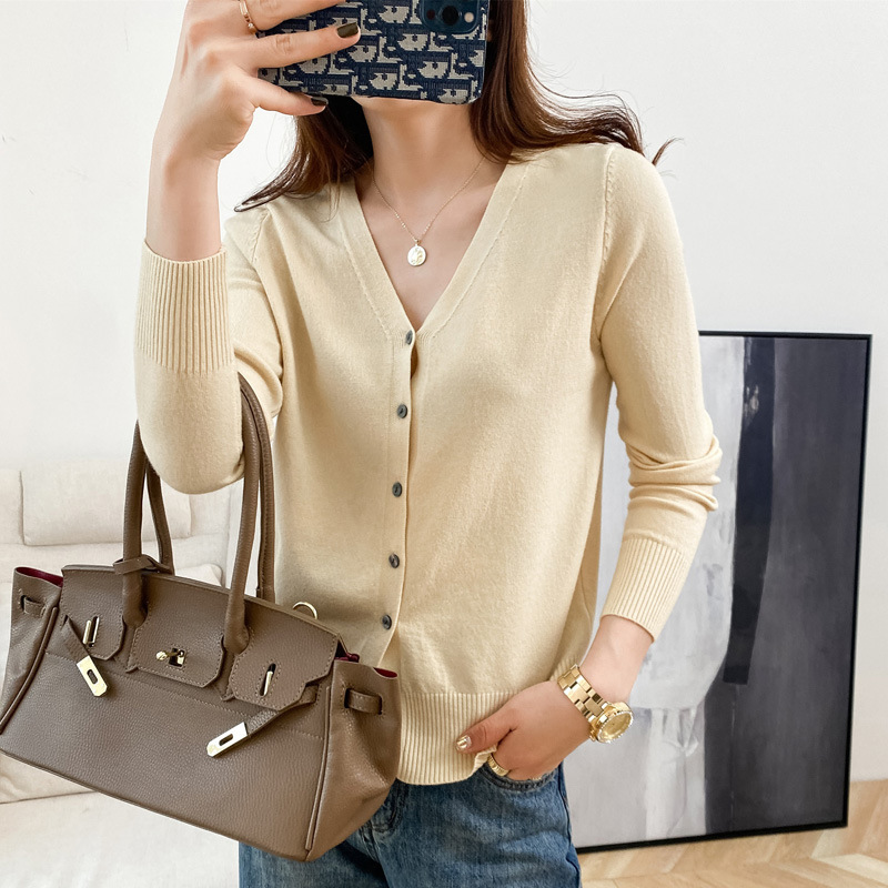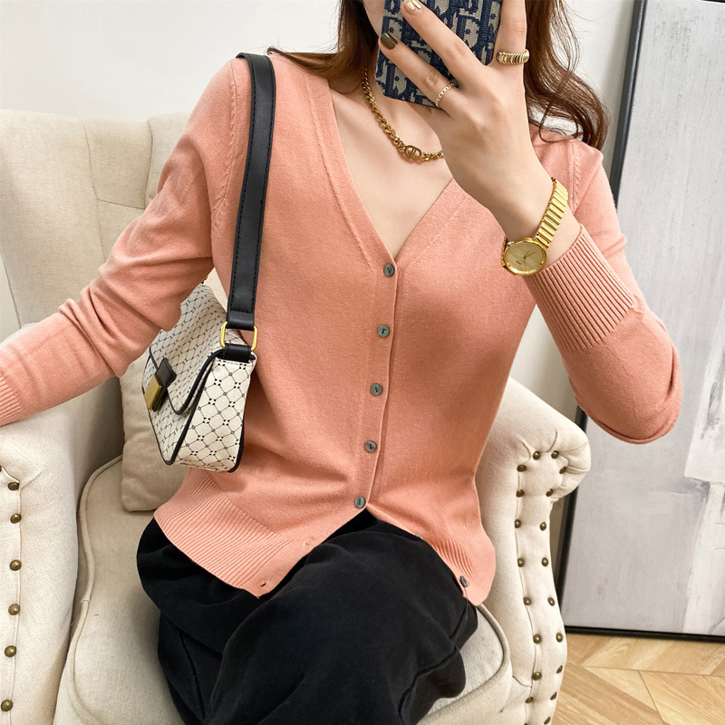 Вязаный топ в корейском стиле на раннюю осень, свитер с V-образным вырезом, свободный базовый слой, женский однотонный укороченный кардиган, оптом
